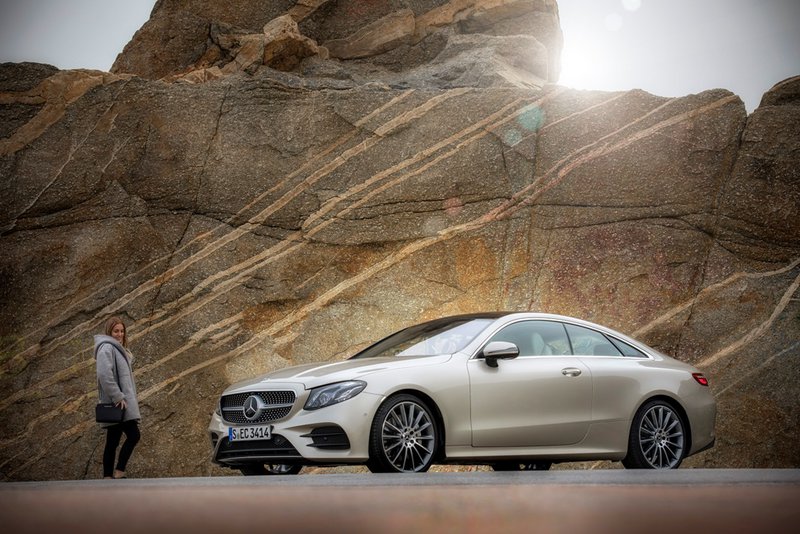 Έρχεται έτσι η σπορτίβικη «E» να προστεθεί στην οικογένεια που απαριθμεί επίσης sedan, touring και την περιπετειώδη All-Terrain. Είναι προφανής εδώ –και επιτυχημένη- η προσπάθεια δημιουργίας ενός αυτοκινήτου που να προσφέρει μέσα από τις κλασικές για κουπέ αναλογίες και τη σχεδιαστική της διαφοροποίηση έναντι της sedan (στην οποία βασίζεται), τις χάρες ενός αθλητικού συνόλου με τις ανέσεις ενός Grand Tourer για 4 επιβάτες. Ο μακρύς εμπρός πρόβολος, με τα χαρακτηριστικά εξογκώματα καπό και τη χαμηλή γρίλια με το μεγάλο αστέρι από τη Στουτγάρδη, το κοφτό πίσω μέρος, οι σχεδιαστικές νότες σπορ υλοποιήσεων όπως είναι οι χωρίς πλαίσια παραθύρων πόρτες, ή η έλλειψη κολόνας Β καθώς και τα πίσω εντυπωσιακά φωτιστικά δημιουργούν ένα καλαίσθητο και…large αποτέλεσμα. Με μήκος 4.826 mm ( 123 mm), πλάτος 1.860 mm ( 74 mm) αλλά και ύψος στα 1.430 mm ( 33 mm), η νέα E-Class είναι μεγαλύτερη από την προηγούμενη γενιά αλλά όπως αναφέρει η Mercedes το κύριο όφελος έρχεται με την αύξηση των μετατροχίων 1.605 mm εμπρός ( 67 mm) και 1.609 mm ( 68 mm), πίσω καθώς αυτά είναι εν πολλοίς μια ένδειξη ευρυχωρίας αλλά και ο οδηγικός «καθρέφτης» του αυτοκινήτου.
