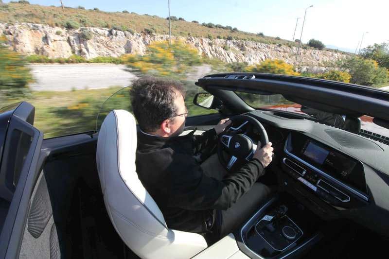 Το μικρότερο μεταξόνιο και τα μεγαλύτερα μετατρόχια έχουν δημιουργήσει ένα σαφώς πιο ευέλικτο αυτοκίνητο με πιο «γεμάτη» παρουσία στην άσφαλτο, κάτι που σε συνδυασμό με τα φαρδιά ελαστικά (τα εξαιρετικά Michelin Pilot Super Sport, 255άρια εμπρός, 275άρια πίσω!), θα πρέπει να υπάρξει τραγικό οδηγικό λάθος ή υπερβολικός ενθουσιασμός ώστε να «σπάσει» η πρόσφυση και να φέρει το πανέμορφο roadster σε δύσκολη θέση. Ο κινητήρας που είχαμε στην διάθεσή μας για την μικρή σε διάρκεια βόλτα ήταν ο 2λιτρος βενζίνης με τους 197 ίππους και τα 56.300 ευρώ με την sDrive20i. Κλασικό BMW-δίστικο σύνολο, με έντονο ταμπεραμέντο (που τονίζεται ακόμα περισσότερο από την ελευθεριάζουσα εξάτμιση) και απόλυτα ταιριαστό με το οκτατάχυτο κιβώτιο που λειτουργεί αστραπιαία, ιδίως στο sport πρόγραμμα.
