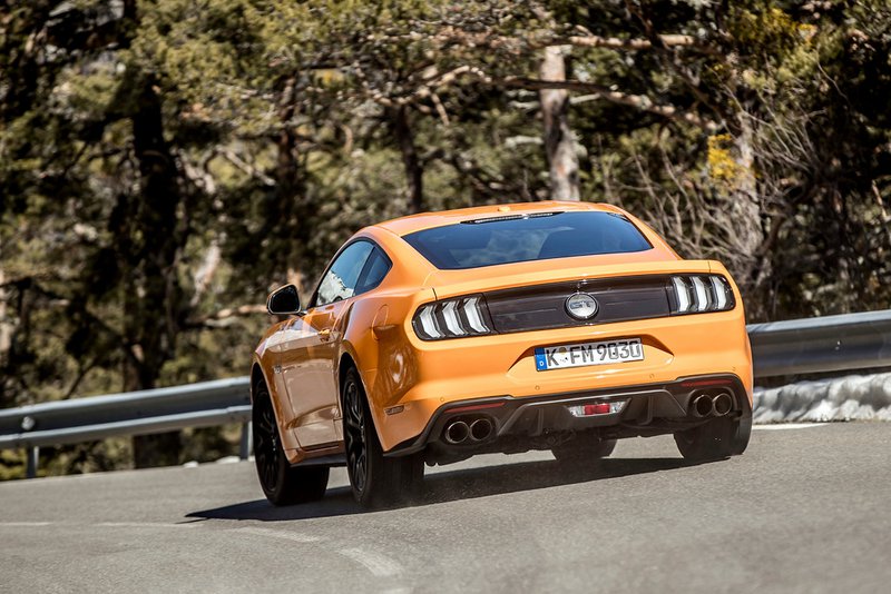 Αντίστοιχη είναι και η προσέγγιση στο πίσω μέρος, όπου τον τόνο δίνουν τα LED φωτιστικά σώματα, ένας μεγάλος διαχύτης, οι τέσσερις απολήξεις της εξάτμισης (στην έκδοση V8) καθώς και μία έξτρα αεροτομή. Από εκεί και πέρα υπάρχουν πολλές δυνατότητες εξατομίκευσης της εξωτερικής εμφάνισης του αυτοκινήτου, είτε αυτό αφορά τα χρώματα (υπάρχουν τρεις νέες πολύ εντυπωσιακές αποχρώσεις), οι κλασικές «αγωνιστικές» λωρίδες σε μαύρο και άσπρο, καθώς και νέες ζάντες 19 ιντσών που και αυτές έχουν αρκετές δυνατότητες για διαφορετικό φινίρισμα.