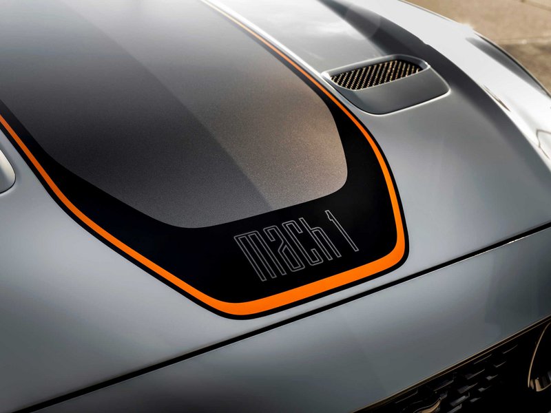 Το αμάξωμα της Mach 1 διατίθεται και σε γκρι χρωματισμό που παραπέμπει σε αυτόν ενός μαχητικού αεροσκάφους, ο οποίος προορίζεται αποκλειστικά για τη συγκεκριμένη έκδοση του μοντέλου. Επίσης, στα φτερά υπάρχει το λογότυπο «Mach 1» με γράμματα που παραπέμπουν στο παρελθόν,χρωματιστές γραμμές στο καπό και στο πλάι, ενώ η μάσκα ενσωματώνει γρίλια η οποία είναι τρισδιάστατη. Πέραν αυτών, στον πίσω προφυλακτήρα υπάρχει αεροδυναμικός διαχύτης ο οποίος προέρχεται από τη Mustang Shelby GT 500. Έτσι, στο αμάξωμα της Mach 1 συνδυάζονται στοιχεία του παρελθόντος με σύγχρονα, ενώ έχουν ακολουθηθεί και οι κανόνες της αεροδυναμικής.