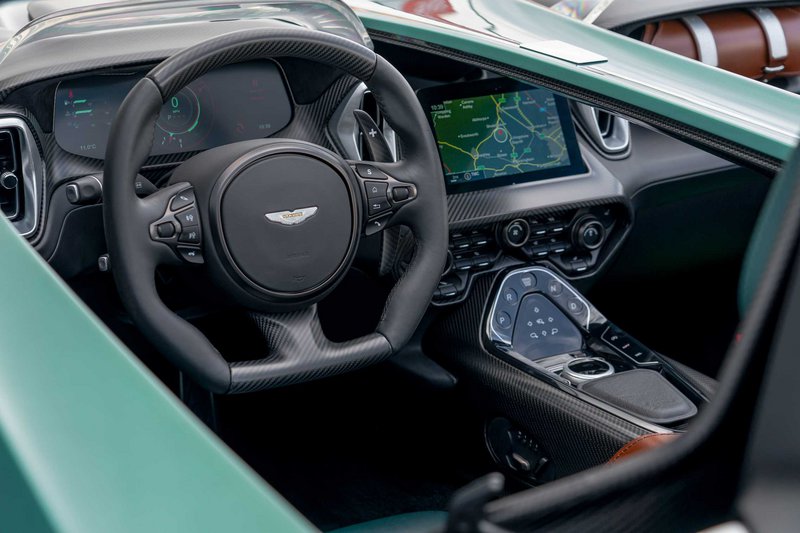 Ως βάση για τη V12 Speedster χρησιμοποιήθηκε μια εκδοχή του αλουμινένιου σασί της Vantage Roadster, όπως και το εμπρός μέρος της DBS Superleggera, το οποίο προσαρμόστηκε κατάλληλα για να χωρέσει τον ογκωδέστατο twin-turbo, V12 κινητήρα, χωρητικότητας 5,2 λίτρων. Όπως μας είπαν, το αυτοκίνητο που οδηγήσαμε ήταν ένα από τα τελευταία προπαραγωγής. Ωστόσο, ήταν αντιπροσωπευτικό των οχημάτων που θα παραλάβουν οι ιδιοκτήτες της V12 Speedster από τα μέσα της χρονιάς και έπειτα, αφού καταβάλλουν το ποσό των περίπου 950.000 δολαρίων (σημ.: περίπου 780.000 ευρώ).