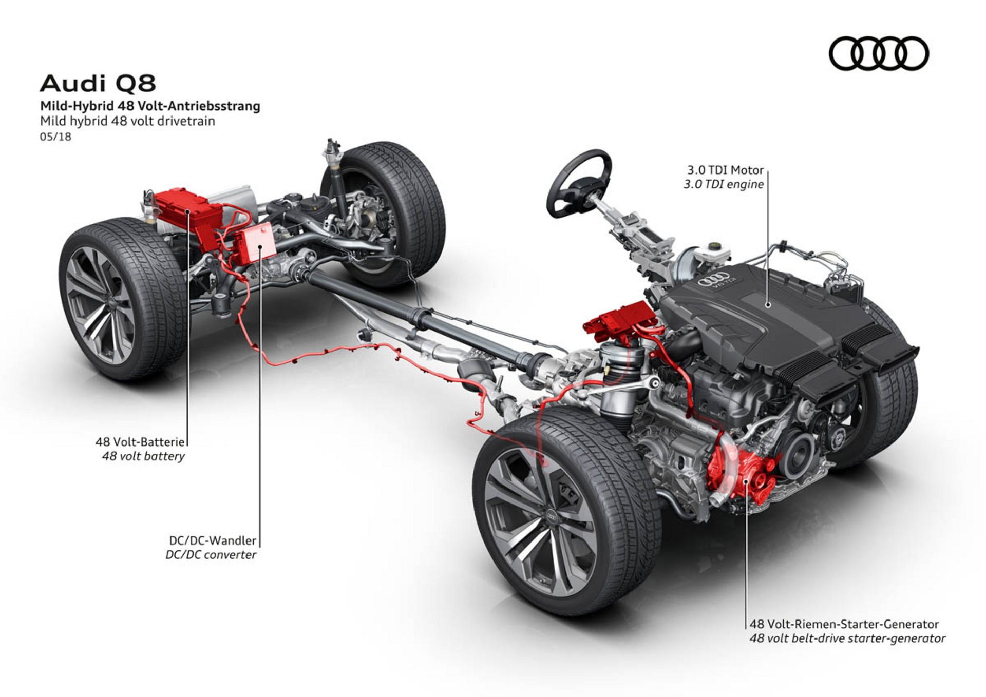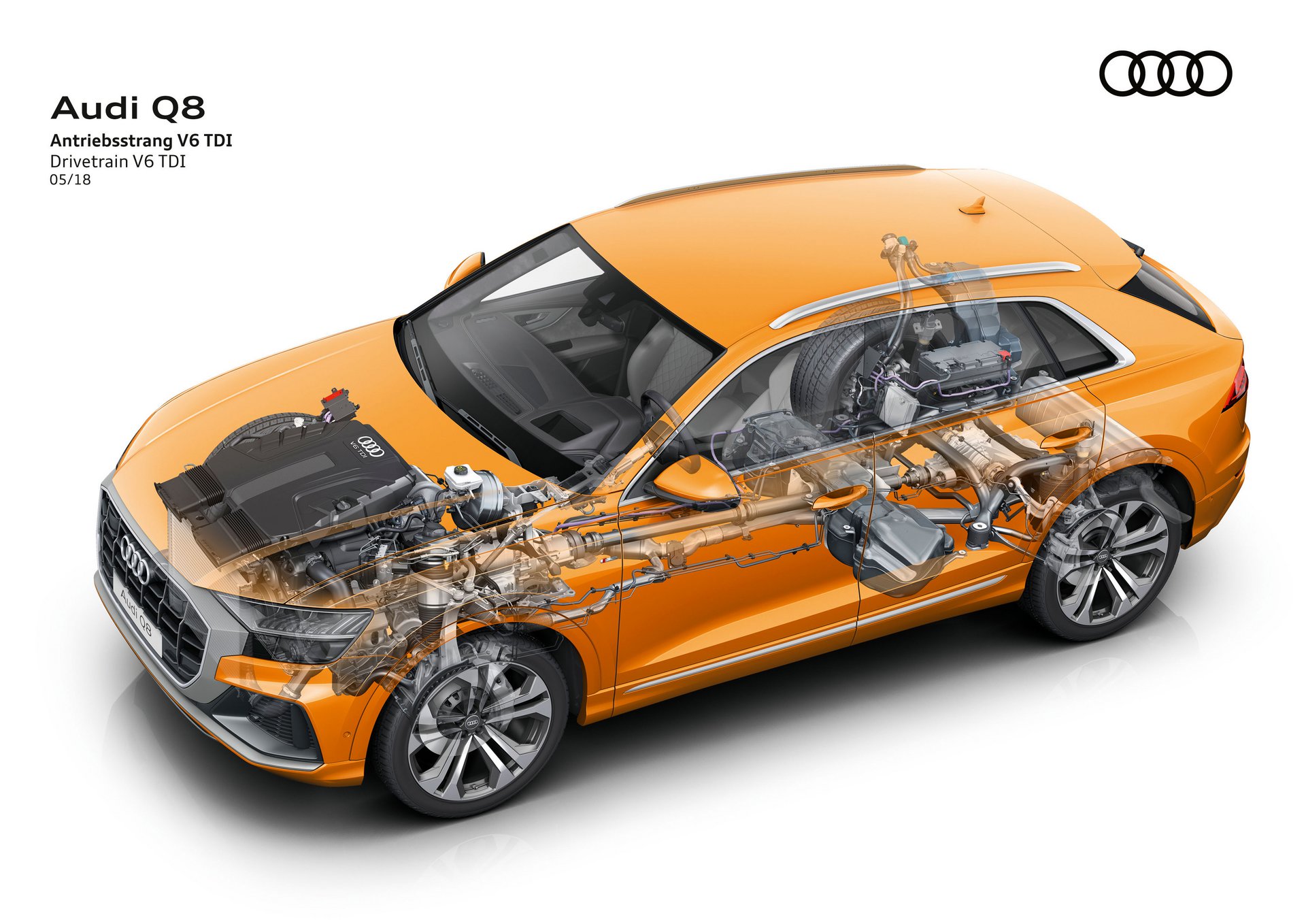 Έχουµε εντυπωσιαστεί µε αυτόν τον turbo 3λιτρο V6 κινητήρα σε πρόσφατες δοκιµές άλλων µοντέλων. Είναι µεταξένιος, αν και όχι ιδιαίτερα µπάσος. Είναι βιδωµένος στο πανταχού παρόν, εξαιρετικό 8άρι αυτόµατο κιβώτιο της ZF και όλα τα Q8 έρχονται µε στάνταρ τη µόνιµη τετρακίνηση η οποία έχει πισωκίνητη ρύθµιση.