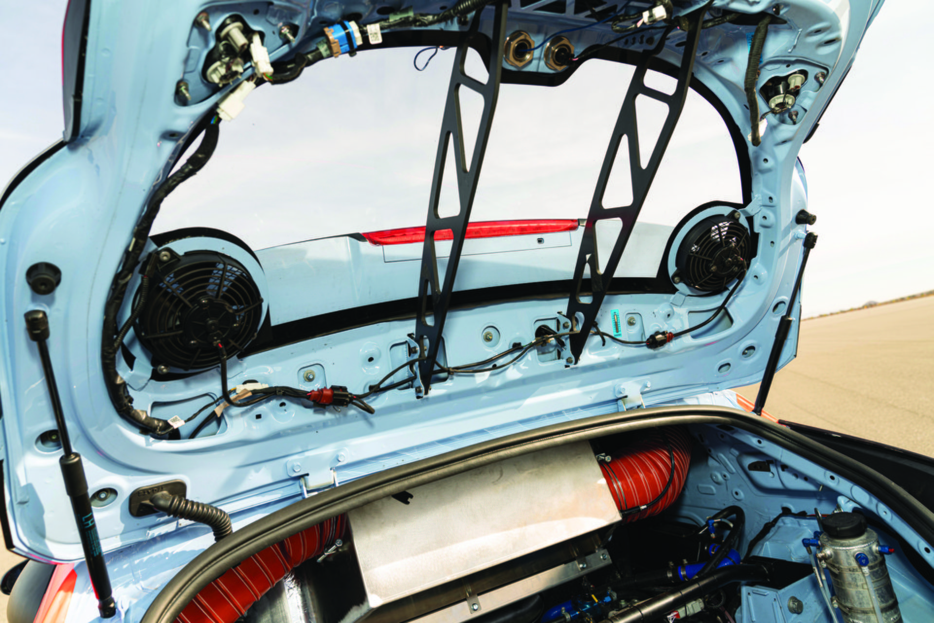 H Hyundai πειραματίζεται για κάποιο χρονικό διάστημα τώρα με αυτοκίνητα που έχουν τον κινητήρα εκεί που κανονικά βρίσκεται το πίσω κάθισμα, όπως στα Renault R5 Turbo και Clio V6 Renault Sport. Η κορεατική εταιρεία κέρδισε φέτος τον πρώτο της Παγκόσμιο Τίτλο Kατασκευαστών στο WRC και η γκάμα των μοντέλων της που φέρουν το γράμμα «N» επεκτείνεται. Το RM19, το οποίο παρουσιάστηκε στην Έκθεση Αυτοκινήτου του Los Angeles, είναι το πιο πρόσφατο αυτοκίνητό της υψηλών επιδόσεων. «Είναι το πιο άγριο όχημα που έχουμε ως τώρα», δηλώνει με χαμόγελο ο κ. Schemera. Είναι το πρώτο πρωτότυπό της με κινητήρα στο κέντρο που η Hyundai μάς επέτρεψε να οδηγήσουμε, έστω και αν δεν βρεθήκαμε στην πίστα του Nürburgring, εκεί όπου η εταιρεία κάνει εντατικές δοκιμές. Αντιθέτως, η εταιρεία έφερε δύο RM19 στην πίστα δοκιμών που έχει δημιουργήσει στην έρημο Mojave και μας επέτρεψε να κάνουμε τρεις γύρους σε αυτήν.