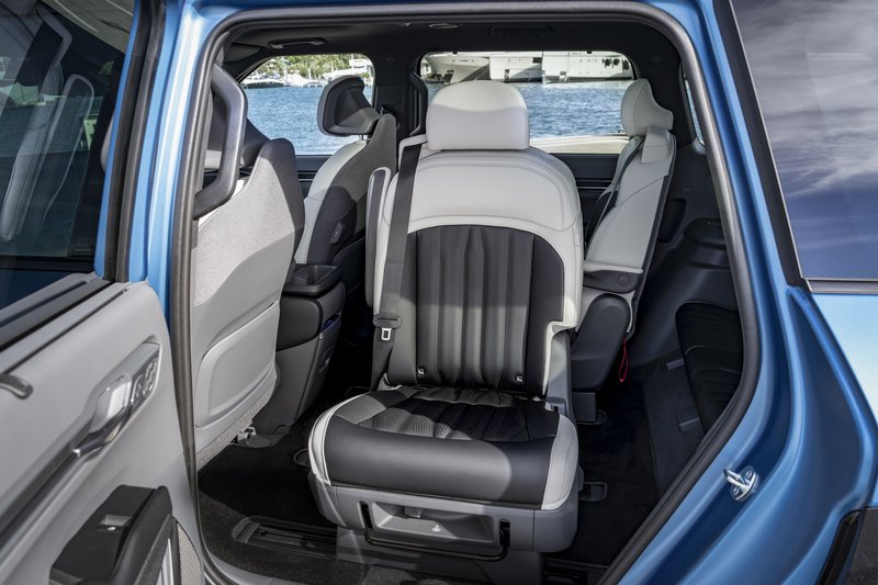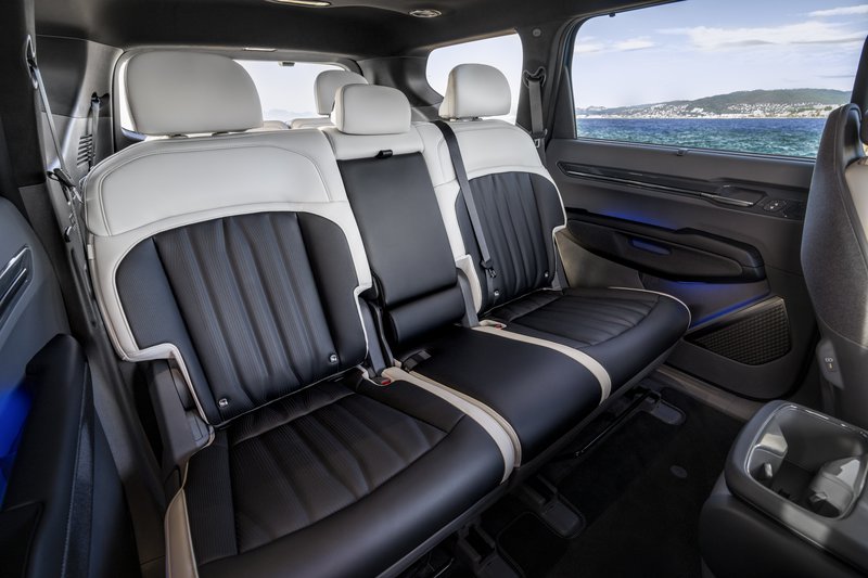 Το EV9, λοιπόν, διαθέτει τρείς σειρές καθισμάτων και την επιλογή διαμόρφωσης εξαθέσιας (2/2/2) ή επταθέσιας έκδοσης (2/3/2). Στην εξαθέσια έκδοση υπάρχει η δυνατότητα τα καθίσματα να περιστρέφονται προς τα πίσω (180ο), ώστε οι πίσω επιβάτες να αισθανθούν πιο φιλόξενα, όπως ακριβώς συνέβαινε στα αυτοκίνητα της, πάλαι ποτέ, MPV κατηγορίας.