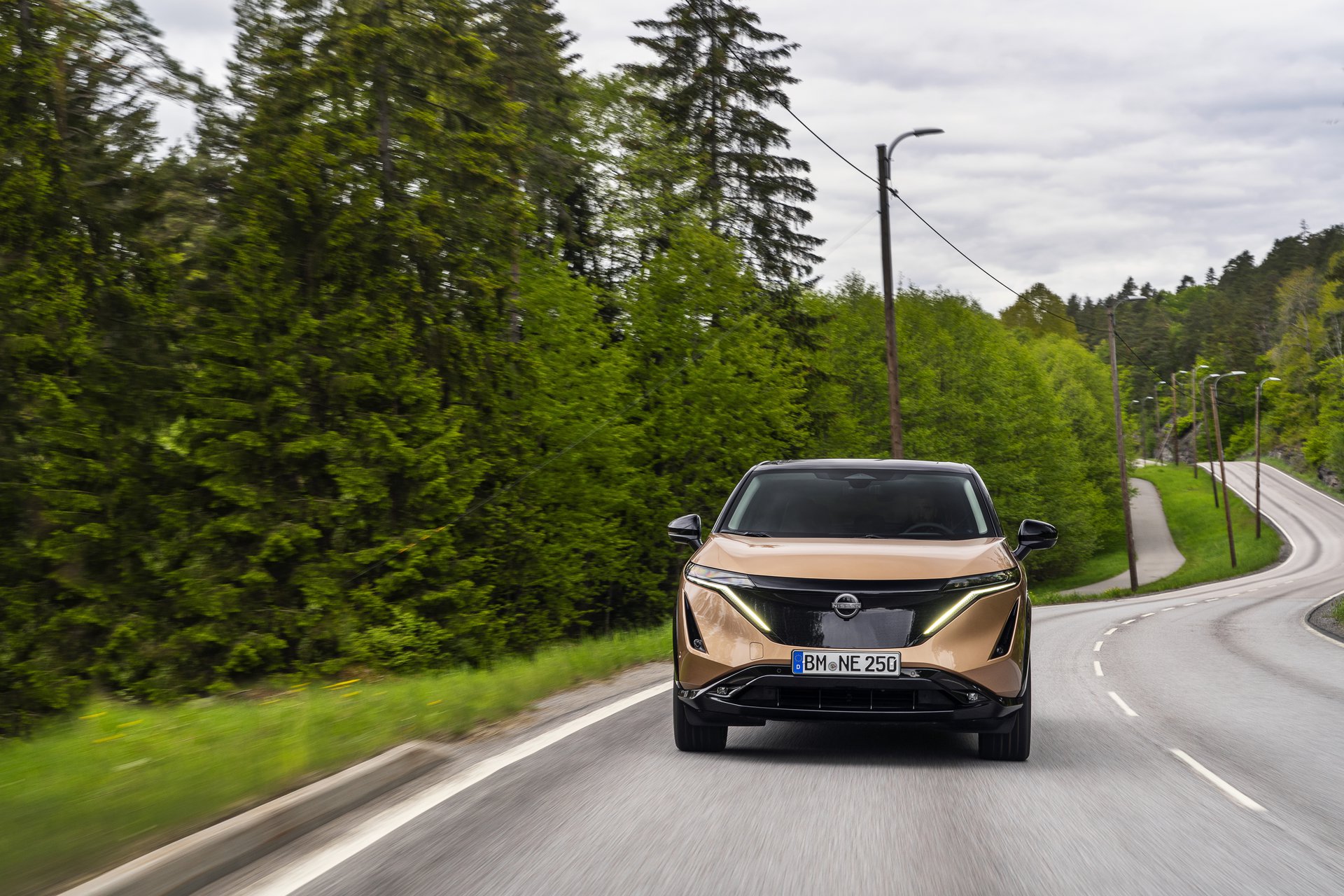 Στους σουηδικούς δρόμους γύρω από την Στοκχόλμη το Ariya έδειξε την ακαμψία του πλαισίου αλλά και τα πλεονεκτήματα της αρχιτεκτονικής των αναρτήσεων (εμπρός με γόνατα Mc Pherson και πίσω πολλαπλών συνδέσμων), με τους μηχανικούς της Nissan να έχουν βρει μια πολύ καλή ισορροπία ανάμεσα στην απόσβεση και το κράτημα. Αν και οι σουηδικοί δρόμοι δεν είναι οι πλέον κατάλληλοι για να διαπιστώσεις την απόσβεση ενός οχήματος, εν τούτοις η ανάρτηση του Ariya αντιδρά αποτελεσματικά εξασφαλίζοντας άνεση στους επιβάτες, αλλά και κορυφαία επίπεδα πρόσφυσης, κάτι που οφείλει και στην τέλεια κατανομή βάρους. Στη διάθεσή μας είχαμε την 2WD έκδοση με την μικρή μπαταρία (63 kWh) για την οποία αυτό που μπορούμε να σας πούμε είναι πως αφορά μια ισορροπημένη έκδοση υπό την έννοια πώς θα σε ικανοποιήσει στον τομέα των επιδόσεων (0-100 km/h 7,5 sec όπως, ήδη προαναφέραμε), αλλά και με την κατανάλωση ενέργειας την οποία σε μικτή διαδρομή μετρήσαμε στα 18,5 kWh/100 km. Μόνη παραφωνία σε ένα κατά τα άλλα ήσυχο εσωτερικό οι αεροδυναμικοί θόρυβοι από τους εξωτερικούς καθρέπτες με ταχύτητες από 120 km/h και πάνω.