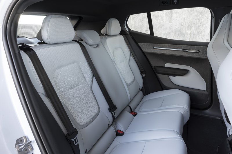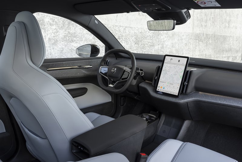 Σε ό,τι αφορά την αισθητική, η καμπίνα του ΕΧ30 είναι minimal, δίνοντας έμφαση μόνο στα απαραίτητα και σε μια προσπάθεια από την πλευρά του κατασκευαστή να περάσει το μήνυμα της πράσινης μετάβασης. Όσο και εάν ψάξετε, δεν θα βρείτε πολυτελή υλικά που είθισται να χρησιμοποιούνται στην upper class κατηγορία, αλλά βιώσιμα προκειμένου να τονισθεί ο green χαρακτήρας του μοντέλου. Εσωτερικό από 100% ανακυκλώσιμα υλικά και αυτό είναι μια τόλμη, ένα statement αν θέλετε από την πλευρά των Σουηδών, όσο και εάν η θέα και η αφή των πλαστικών στο ταμπλό ξενίζει. Ίδιας φιλοσοφίας επενδύσεις καθισμάτων και γενικότερα η εικόνα ενός εσωτερικού (κατασκευασμένο από ανακυκλωμένα και ανανεώσιμα υλικά, όπως το ύφασμα τζιν, το λινάρι και ένα ειδικό μίγμα μαλλιού), που δεν έχει ως στόχο να εντυπωσιάσει, αλλά να κερδίσει το κοινό εκείνο που ενδιαφέρεται για το περιβαλλοντικό του αποτύπωμα.