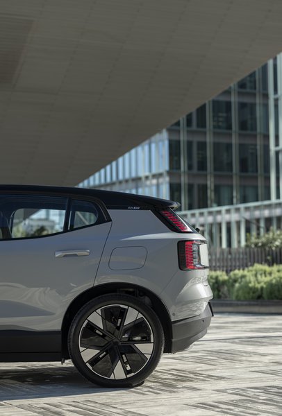 Από το EX90, το EX30 «δανείζεται» εκτός από κάποια δομικά στοιχεία και την αισθητική του αμαξώματος, σε σημείο που να μπορεί να χαρακτηρισθεί ως ένα baby-EX90. Εξαίρεση αποτελεί η 3η κολώνα, που είναι πιο έντονη για προσδίδει περισσότερο δυναμισμό, καθώς τα φωτιστικά σώματα εμπρός και πίσω έχουν το χαρακτηριστικό σχήμα που η Volvo υιοθετεί στις πρόσφατες δημιουργίες της.