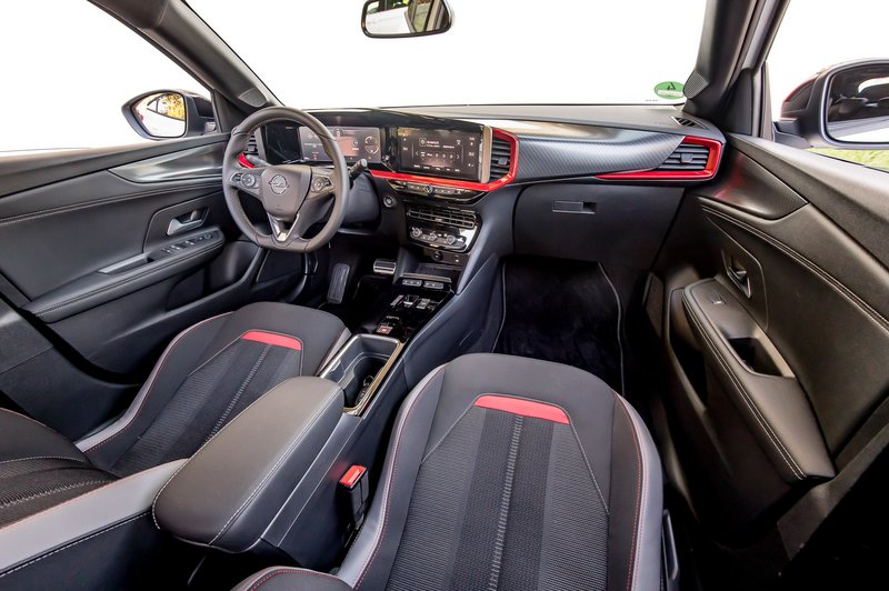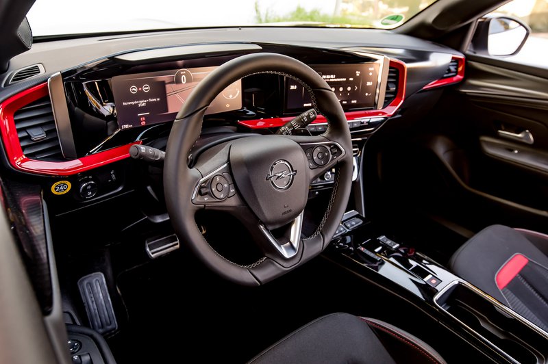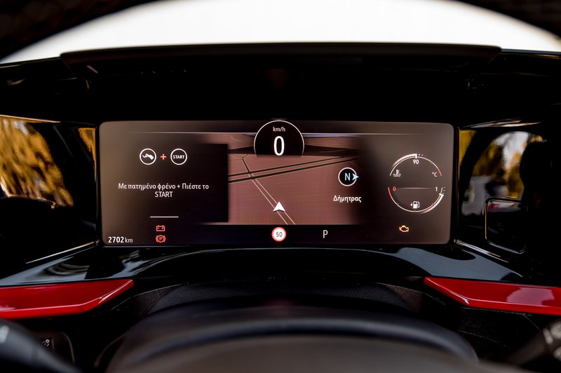 H διαμόρφωση του ταμπλώ ορίζεται από τις έγχρωμες οθόνες που υπάρχουν σε αυτό. Στην Opel το ονομάζουν «Pure Panel» και αποτελείται από την έγχρωμη οθόνη 12 ιντσών στη θέση του πίνακα οργάνων και από την έγχρωμη οθόνη αφής 10 ιντσών στην κονσόλα. Ακόμα ένα ενδιαφέρον στοιχείο είναι ότι η ενιαία επιφάνεια που δημιουργείται είναι στραμμένη προς τον οδηγό, ώστε αυτός να έχει καλύτερη εικόνα για τις πληροφορίες που θέλει και να χειρίζεται ευκολότερα την κεντρική οθόνη.