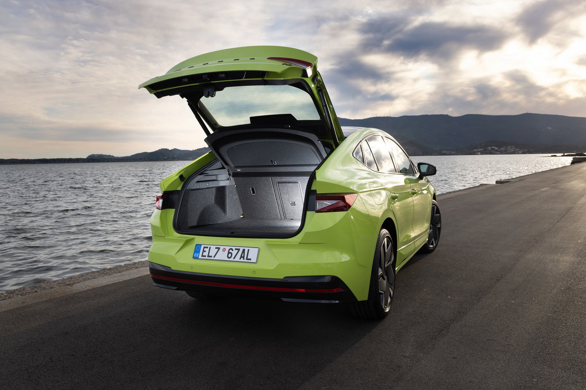 Σύμφωνα με τη Skoda, το μήκος του είναι 4.653 mm, το πλάτος του 1.879 mm και το ύψος του φτάνει τα 1.622 mm. Για να έχουμε ένα μέτρο σύγκρισης, είναι κατά μόλις τέσσερα χιλιοστά πιο μακρύ από το Enyaq iV SUV, έχει το ίδιο πλάτος, ενώ το ύψος του είναι κατά έξι χιλιοστά μεγαλύτερο. Αναφορικά με το μεταξόνιό του, φτάνει τα 2.765 mm και είναι ταυτόσημο στις δύο εκδόσεις.