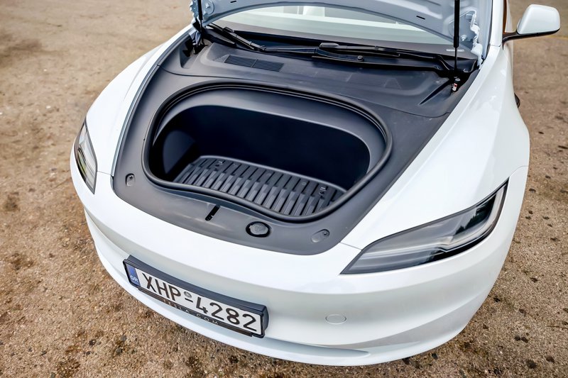 Η καμπίνα είναι ακόμη πιο αθόρυβη (συγκλονιστικά αθόρυβη) χάρη στα νέα παχιά κρύσταλλα, νέα στεγανωτικά και νέα silent blocks στην ανάρτηση που φιλτράρουν με πολύ όμορφο τρόπο τις όποιες κακοτεχνίες. Με το λευκό της χρώμα δείχνει ακόμα πιο ευρύχωρη ενώ 5 επιβάτες βολεύονται άνετα παρά το χαμηλό της ύψος μιας και το πάτωμα είναι εντελώς επίπεδο και το μεταξόνιο αγγίζει τα 2.875 mm. Όμως και οι αποσκευές βολεύονται εξαιρετικά, παρά το μικρό άνοιγμα της πίσω πόρτας με 594 L χώρου αποσκευών πίσω και 88 L εμπρός. Η κεντρική κονσόλα είναι πλέον διαφορετική επενδυμένη με αλουμίνιο, προσφέροντας μεγάλο χώρος αποθήκευσης και διπλούς ασύρματους φορτιστές τηλεφώνων ενώ και θύρες type C στα 65 Watts υπάρχουν. Και αν σου δημιουργεί τρομερό αίσθημα ησυχίας η καμπίνα, δεν ισχύει το ίδιο με το ηχοσύστημα. Είναι νέο, φροντισμένο από την Tesla με 9 ηχεία, subwoofer και ψηφιακό ενισχυτή υποστηρίζοντας Spotify, Apple Music και Tidal και τόσο στακάτες και ελεγχόμενες χαμηλές συχνότητες καιρό είχαμε να απολαύσουμε.