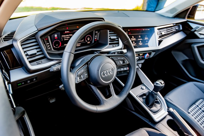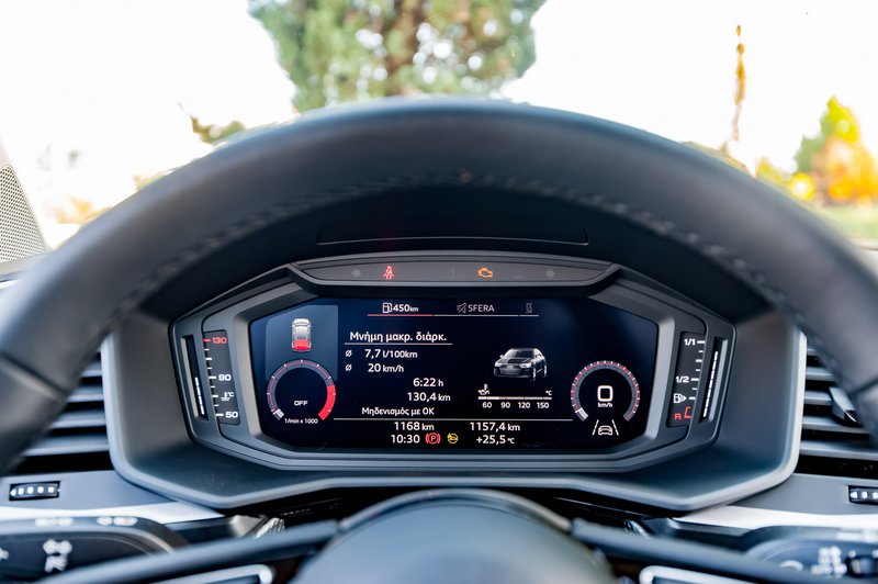 Η λογική με τις αδρές γραμμές συνεχίζεται και στο εσωτερικό, όπου η παραπομπή σε ένα ακριβό αυτοκίνητο γίνεται από το σύνολο των στοιχείων που το συνθέτουν. Audi ταμπλώ, Audi υλικά, αυστηρή σχεδίαση που συνοδεύεται από ψηφιακές οθόνες για πίνακα οργάνων και πολυμέσα, αμφότερες, μάλιστα, με την επεικονιστική ποιότητα να θυμίζουν μεγαλύτερο μοντέλο της φίρμας. Το σύνολο εμπρός δείχνει οδηγοκεντρικό, με πληθώρα πληροφοριών από τα εξελληνισμένα μενού, αλλά έλλειψη χώρων για μικροαντικείμενα. Οι πίσω επιβάτες, επίσης, θα αποζητήσουν λίγο περισσότερο «αέρα» για τα γόνατά τους, ειδικά αν είναι ενήλικες.
