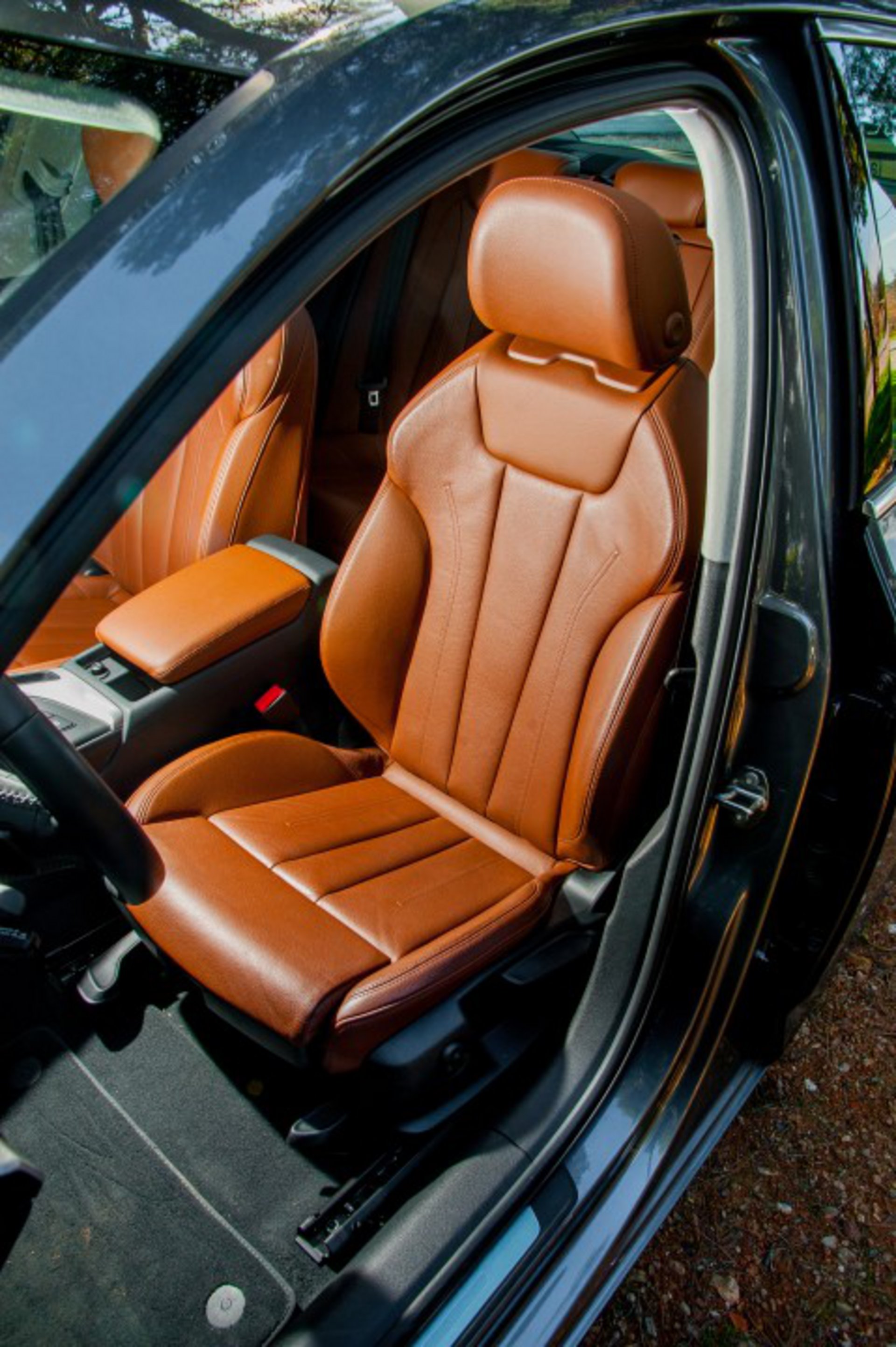 Το εσωτερικό έχει καταφέρει να κρύψει πολλά πράγματα σε λίγο χώρο. Με άλλα λόγια υπάρχει τεχνολογία και ανέσεις αλλά το ταμπλό, η κονσόλα και όλα τα επιμέρους πάνελ είναι συμμαζεμένα με αποτέλεσμα να μην κλέβουν ζωτικό χώρο από τους επιβάτες τόσο εμπρός όσο και πίσω. Μάλιστα η υλοποίηση δείχνει απλοϊκή αλλά είναι εξαιρετική με άριστα υλικά και μπόλικες πινελιές δυναμισμού όπως είναι ο επιλογέας ταχυτήτων-κομψοτέχνημα. Το δε δερμάτινο σαλόνι στην καφέ του απόχρωση είναι πολύ…ιταλιάνικο και επομένως μοδάτο. Βεβαίως όταν παίρνεις το κλειδί ενός Audi σίγουρα περιμένεις και κάποια πράγματα που μας έλειψαν όπως η full ψηφιακή οθόνη αντί του κλασικού πίνακα οργάνων, το Audi drive select για παραμετροποίηση της λειτουργίας του κινητήρα ή μια μεγάλη οθόνη στην κορυφή του ταμπλό με σύστημα πλοήγησης από αυτά που εξοπλίζουν τις top εκδόσεις. Τέλος πάντων…