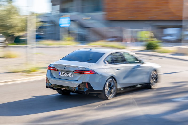 Το ενδιαφέρον είναι ότι την ίδια στιγμή διαπιστώνεις ότι οι κινήσεις του αμαξώματος ελέγχονται με υποδειγματικό τρόπο, ενώ ο οδηγός έχει κάθε στιγμή την πληροφόρηση που χρειάζεται στο τιμόνι. Από την άλλη μεριά, το γκάζι της eDrive40 είναι... γλυκό – και μπορεί η συγκεκριμένη έκδοση του μοντέλου να είναι η λιγότερο ισχυρή, με μέγιστη ισχύ με «μόνο» 340 PS (με τη βοήθεια της επιλογής “My Mode Sport” – 313 PS χωρίς το Sport), όταν η αντίστοιχη ισχύς της M60 είναι 601 PS, όμως ασυγκίνητο οι επιδόσεις της δεν σε αφήνουν - σε καμία περίπτωση! H ηλεκτρική «πεντάρα» επιταχύνει αβίαστα γρήγορα και αθόρυβα και εξίσου αθόρυβα κινείται και με μεγάλες ταχύτητες. Το αν θα φτάνει κάποιος θόρυβος στα αυτιά σου από το σύστημα κίνησης (στην πραγματικότητα, από το ηχοσύστημα του αυτοκινήτου) είναι θέμα επιλογής σου, καθώς αυτό που ακούς επηρεάζεται από την επιλεγμένη στα “My Modes” λειτουργία. Ενώ ο τρόπος που το αυτοκίνητο τοποθετείται στις στροφές και ελέγχει τον όγκο και το βάρος του είναι πρακτικά υποδειγματικός. Εδώ τον δικό του ρόλο παίζει το σύστημα τετραδιεύθυνσης (4 Wheel Steering) που διέθετε το αυτοκίνητο της δοκιμής μας.