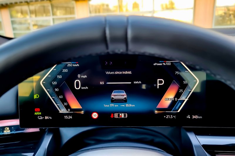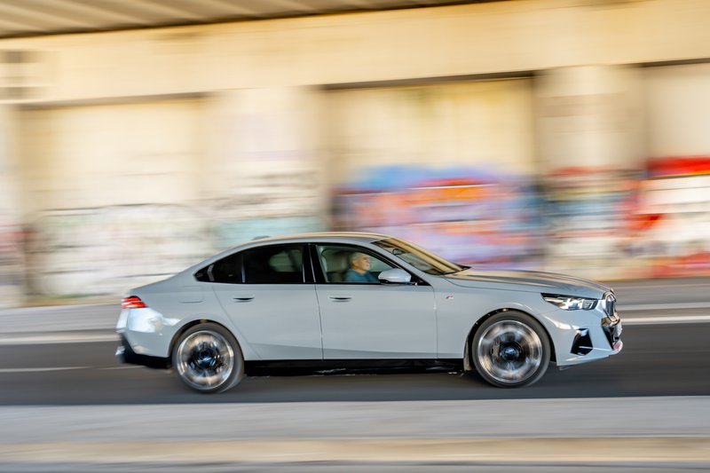 Από τεχνική σκοπιά, θα πρέπει να αναφέρουμε ότι «βάση» του αυτοκινήτου είναι η νέα, πέμπτης γενιάς μπαταρία ιόντων λιθίου υψηλής τάσης με πρισματικές κυψέλες της BMW, η οποία μάλιστα είναι και modular και στην περίπτωση της BMW i5 έχει χωρητικότητα 81,2 kWh προσφέροντας «επίσημη» αυτονομία WLTP 477-582 km. Σημειώστε, δε, ότι καθώς υπάρχει δυνατότητα υπερ-ταχείας φόρτισης DC σε συσκευές 205 kW, η i5 μπορεί να ανακτήσει 156 km αυτονομίας μέσα σε 10 min. Όταν η ηλεκτρική «πεντάρα» αρχίζει να κινείται, αυτό που σκέφτεσαι είναι ότι βρίσκεσαι σε μία «μίνι» BMW i7 για την οποία είχαμε γράψει ότι προσφέρει άνεση αντίστοιχη μιας… Rolls Royce!