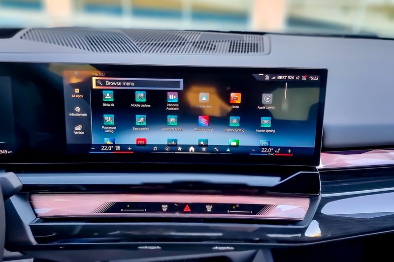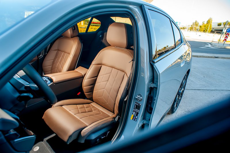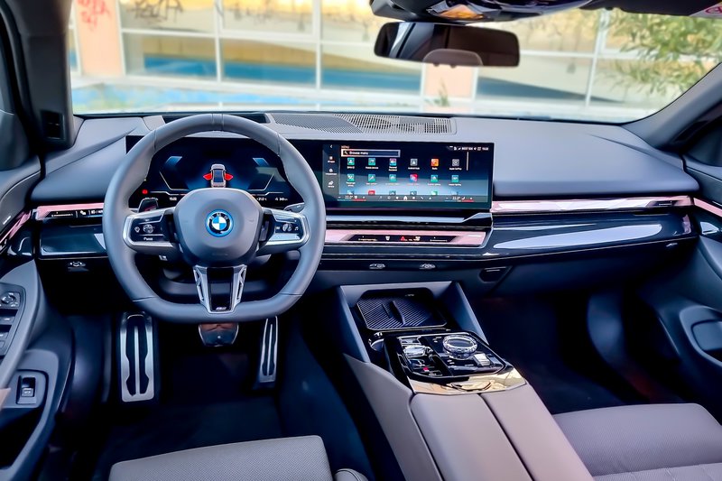 Το εσωτερικό της i5 –το οποίο θα τολμούσαμε να πούμε ότι είναι πιο εντυπωσιακό και μοντέρνο από το εξωτερικό του αυτοκινήτου– δεν μπορεί παρά να σε κερδίσει με την υψηλότατη ποιότητα κατασκευής του. Όλα τα υλικά που περιβάλλουν οδηγό και επιβάτες είναι και δείχνουν «ακριβά», η αίσθηση του πλούτου έντονη, ενώ στις εκδόσεις “M” (όπως το αυτοκίνητο τις δοκιμής μας) συναντάμε κάποια επιπλέον στοιχεία, μεταξύ των οποίων το ηχοσύστημα Harman Kardon (i5), οι ειδικές επενδύσεις των καθισμάτων κ.λπ.