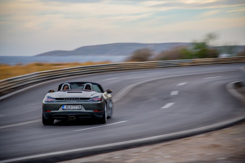 Η ζωή μας γίνεται όλο και πιο σύνθετη, το ίδιο και τα αυτοκίνητα που συνεχώς «φορτώνονται» με πολύπλοκες τεχνολογίες. Το μοντέλο της Porsche που βλέπετε σε αυτές τις σελίδες δεν είναι μία από αυτές τις περιπτώσεις. Είναι σύγχρονο, εξελιγμένο με τις μαγικές συνταγές της Porsche, αλλά, από εκεί και πέρα, βασίζεται σε μια κλασική συνταγή. Πρόκειται για ένα roadster, με έναν κινητήρα βενζίνης στο κέντρο και την κίνηση πίσω. Χωρίς ηλεκτροκινητήρες να υποβοηθούν, χωρίς περεταίρω πολυπλοκότητες. Πρόκειται για την Porsche 718 Boxster, την πιο προσιτή ανοικτή Porsche και τη δεύτερη πιο προσιτή Porsche μετά την Porsche 718 Cayman. Πρόκειται, δηλαδή, για ένα εισαγωγικό μοντέλο στον κόσμο της Porsche που, όμως, όπως διαπιστώσαμε, ο όρος «εισαγωγικό» το αδικεί, μιας και ρεαλιστικά μάλλον δεν χρειάζεσαι τίποτα περισσότερο για τον δρόμο!