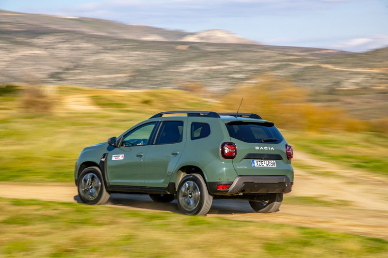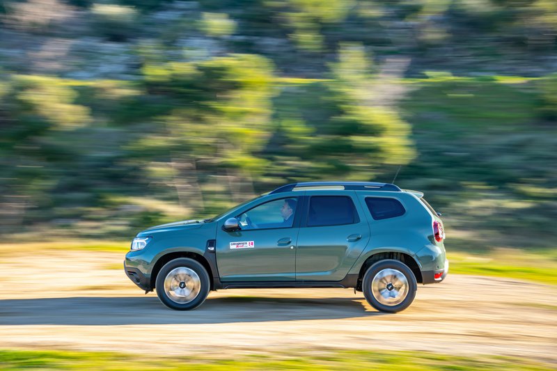 Αυτά τα στοιχεία αντικατοπτρίζονται και στην αίσθηση, αφού με το που πατήσεις το γκάζι η ταλάντωση κατά τον διαμήκη άξονα, απόρροια της ενδοτικής ανάρτησης, σε κάνει να καταλάβεις ότι εδώ η Dacia «ροκάρει».