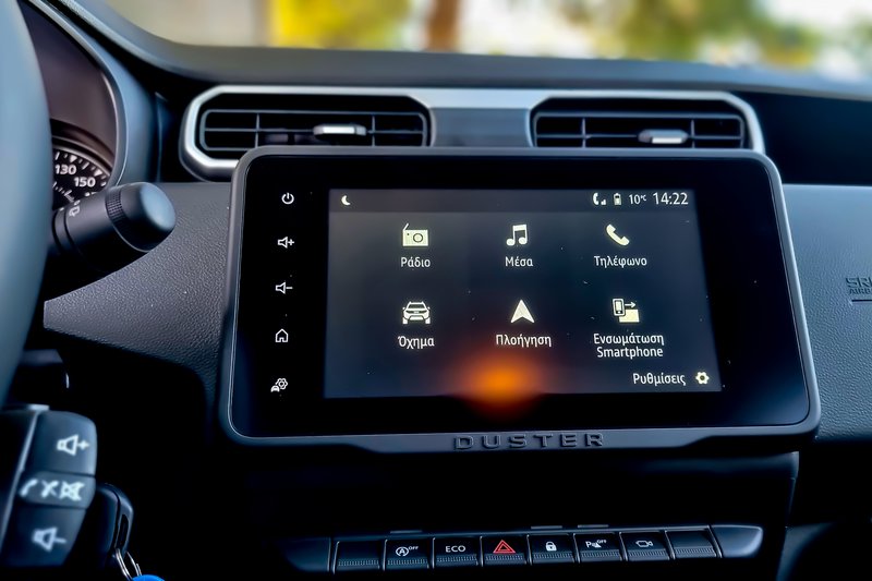Βέβαια, τα φωτιστικά σώματα είναι πλέον LED, ενώ η συνολική υλοποίηση είναι διαχρονικά… Duster. Διακριτικές αλλαγές υπάρχουν στα του εσωτερικού (τόσο στην καμπίνα, όσο και κάτω από το καπό, βεβαίως). Εδώ, στα των επιβατών, έχουμε μια νέα υλοποίηση του γνωστού ταμπλώ με τους κυκλικούς (αλά Alfa Romeo) αεραγωγούς να έχουν αποστρατευτεί και οι πιο στενοί γραμμικοί να συντείνουν στην εικόνα εσωτερικού πλάτους.