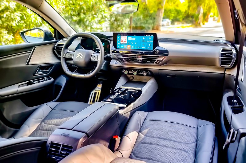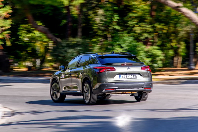 Ταυτόχρονα, όμως, καταφέρνει να κρατά την κατανάλωση σε πολύ χαμηλά επίπεδα. Οι αποστάσεις φεύγουν με μοναδική άνεση κάτω από τις ρόδες του C5 X και μαζί του θες να γυρίσεις την Ευρώπη. Εκεί θα πρέπει να έχετε τον νου σας στην αυτονομία, μιας και το ρεζερβουάρ έχει χωρητικότητα 40 lt, λόγο του υβριδικού συστήματος (52 lt οι υπόλοιπες εκδόσεις). Υπάρχει, βέβαια, και η επιπρόσθετη αυτονομία από την μπαταρία που μετριάζει τη χασούρα. Σε περίπτωση που θελήσεις να κινηθείς γρήγορα σε στροφές καλό είναι να επιλέξεις στα προφίλ οδήγησης το «Sport». Εκεί η ανάρτηση σφίγγει μειώνοντας τις κλίσεις, χωρίς, όμως, να γίνεται σε καμία περίπτωση κουραστική. Αυτή ήταν και η ρύθμιση που επιλέξαμε πολλές φορές, μιας και έδινε μια πιο δεμένη αίσθηση στο αμάξωμα. Ίσως, μάλιστα, θα θέλαμε και τη δυνατότητα αυτόνομης ρύθμισης της ανάρτησης, μιας και πολλές φορές θέλαμε την σφιχτή ανάρτηση χωρίς την άμεση απόκριση στο γκάζι. Γενικά, πάντως, καταφέρνει να είναι ευχάριστο στον δρόμο με έναν δικό του τρόπο. Μάλιστα, την ίδια εικόνα έχουν και οι πίσω επιβάτες, παρά το γεγονός ότι δεν έχουν μασάζ στα καθίσματα!