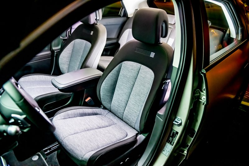Μια προσεκτική ματιά αποκαλύπτει τα χιλιάδες καρέ που συνθέτουν πολλές επιφάνειες του αυτοκινήτου (το εσωτερικό των φώτων, διακοσμητικά, σχεδόν παντού), μικρά τετραγωνάκια σαν να έφτιαξες το αυτοκίνητο στο video game Minecraft, απόρροια της σχεδιαστικής μανιέρας Parametric Pixel που εφάρμοσε η εταιρεία. Αλλά, από την άλλη, είναι τόσο ταιριαστό και ποιοτικό το αποτέλεσμα, που είναι ένα… χαστούκι στα EV ειωθότα της εποχής. Έχει μια μονοκόμματη χροιά, σαν να σμιλεύτηκε από ένα κομμάτι μέταλλο. Βοηθά σε αυτό και το ματ, ασημί μεταλλικό χρώμα, οι χωνευτές λαβές των θυρών, οι αρμοί, τα διάκενα (άψογα φροντισμένα) και λεπτομέρειες, όπως το σχήμα και άνοιγμα του… virtual καπό (δεν υπάρχει κινητήρας εμπρός, αλλά ένας βοηθητικός χώρος αποσκευών 57 lt).