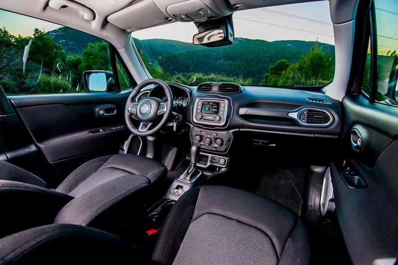 Στην ίδια ακριβώς, λογική, ο θάλαμος επιβατών φαίνεται να μην έχει ωφεληθεί ουσιαστικά από την αναβάθμιση των προδιαγραφών του «μικρού» Jeep. Το «βασικό» σύστημα ενημέρωσης και ψυχαγωγίας με την οθόνη αφής των πέντε ιντσών και τις περιορισμένες δυνατότητες συνδεσιμότητας παραμένει ένα βήμα πίσω από τις τάσεις της εποχής, καθιστώντας επιτακτική την ανάγκη αναβάθμισης με το προαιρετικά διαθέσιμο Uconncect των 7 ή των 8,4 ιντσών. Βήματα προόδου, αντιθέτως, έχουν πραγματοποιηθεί σε επίπεδο ενεργητικής ασφάλειας, καθώς στον βασικό εξοπλισμό του Renegade προστέθηκαν τεχνολογίες όπως το ενεργό σύστημα αποτροπής ακούσιας αλλαγής λωρίδας και αναγνώρισης οδικής σήμανσης. Και σε αυτήν την περίπτωση, βέβαια, επιλέγοντας την κορυφαία έκδοση (Limited), στις εξοπλιστικές προδιαγραφές του αυτοκινήτου προστίθεται -μεταξύ άλλων- το σύστημα αποτροπής συγκρούσεων και αυτόνομης πέδησης.