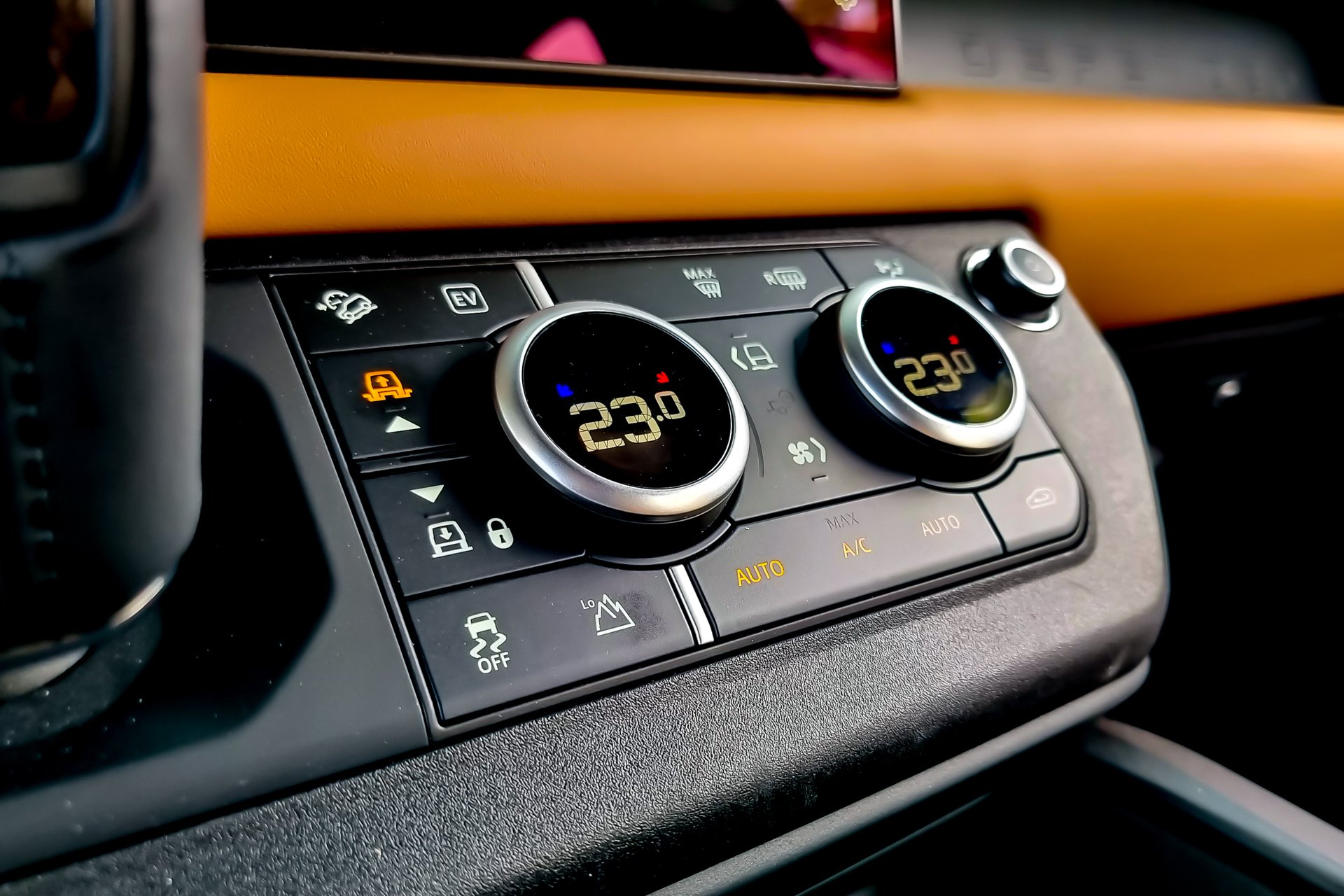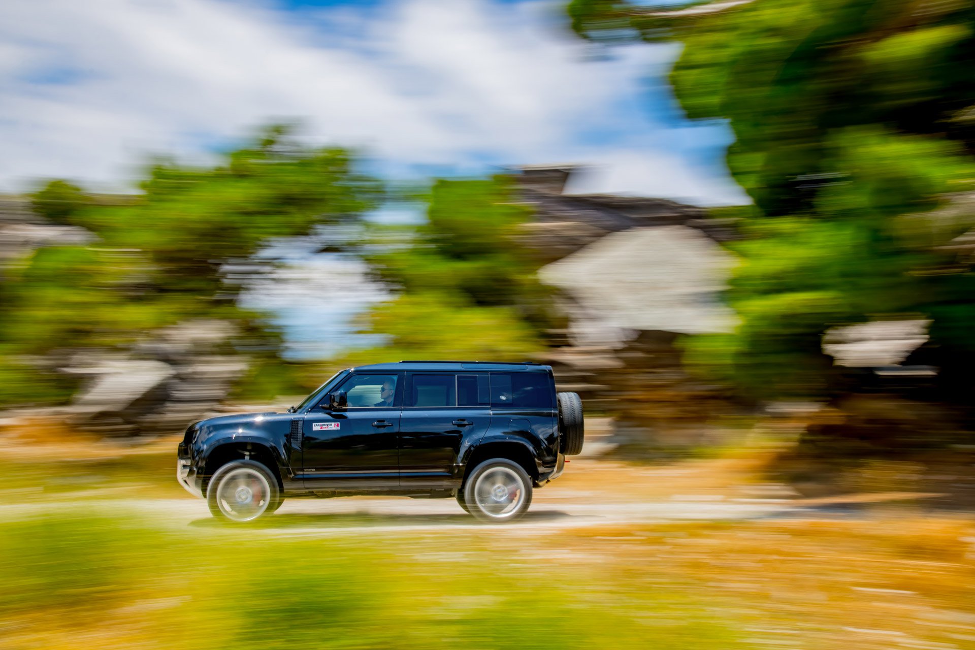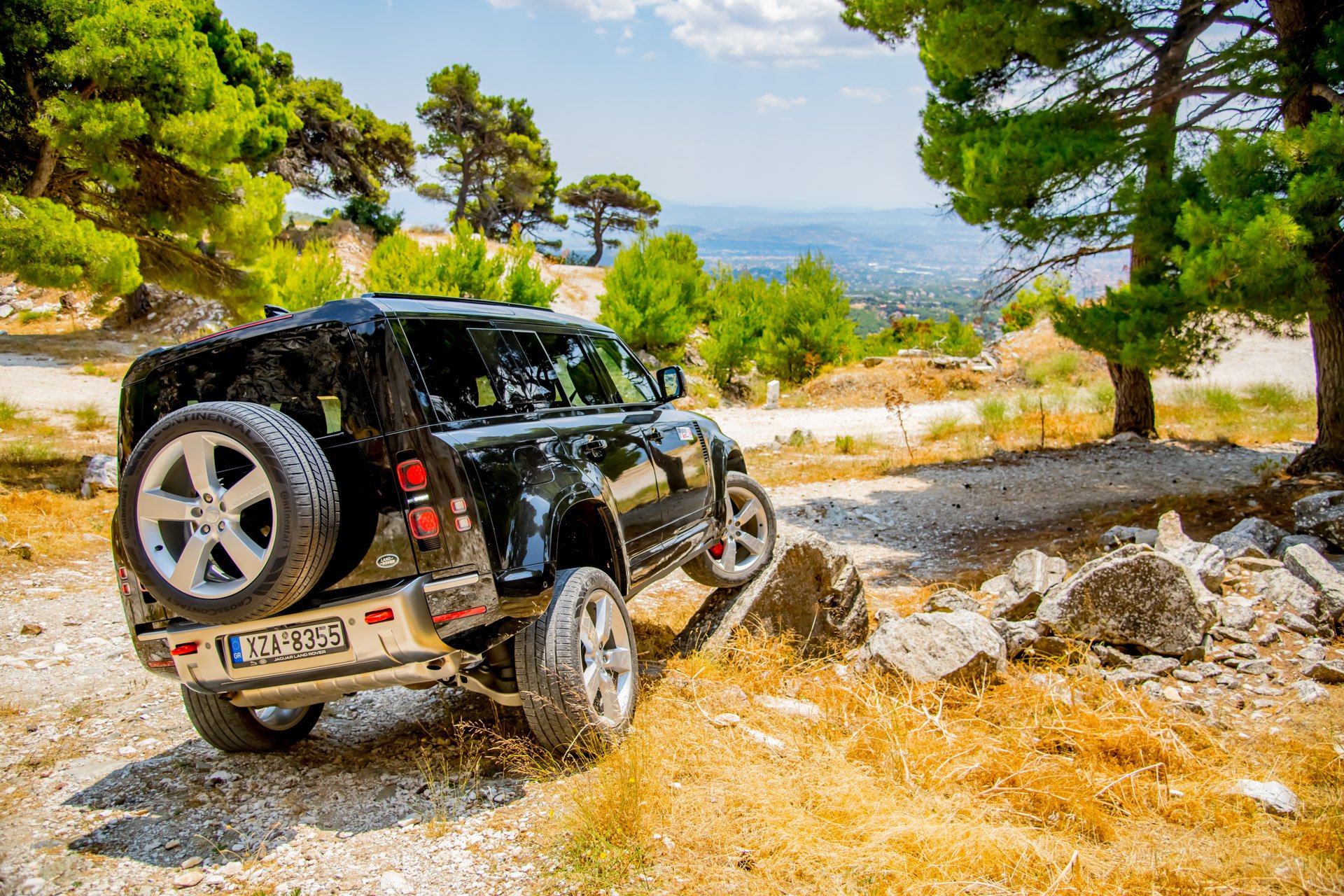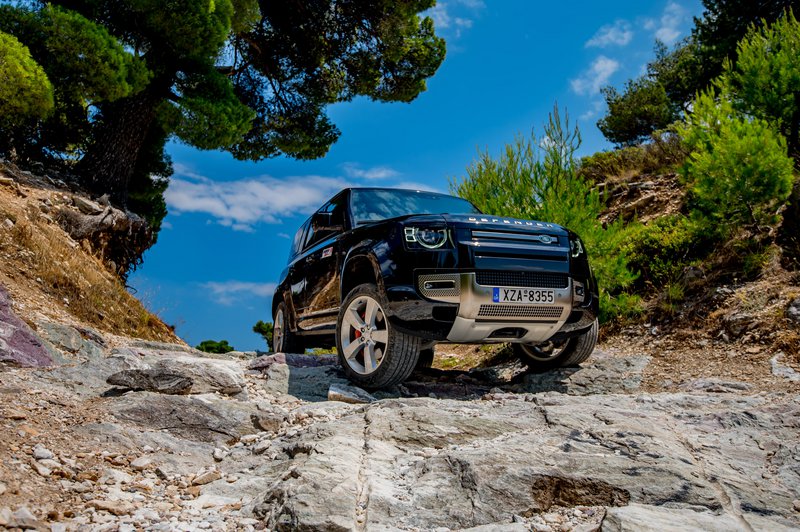 Από την άλλη, η στάνταρ στο plug- in Hybrid Defender P400e ηλεκτρονικά ελεγχόμενη αερανάρτηση είναι απλώς μαγική –ιδιαίτερα εκτός δρόμου– λειτουργώντας ως οδοστρωτήρας, ενώ επιπλέον προσφέρει το μέγιστο πλεονέκτημα της ρύθμισης της απόστασης από το έδαφος μεταξύ 227 mm και 291 mm, επιτρέποντάς σου να περάσεις από σημεία όπου με ένα αυτοκίνητο με συμβατική ανάρτηση και σταθερή απόσταση από το έδαφος κάτι τέτοιο θα ήταν απλώς αδιανόητο. Προσθέστε σε αυτό και τα εντυπωσιακά γεωμετρικά χαρακτηριστικά των γωνιών προσέγγισης, ράμπας και αποχώρησης (37,5° / 27,8° και 40,0°, αντίστοιχα) και έχετε ήδη μπροστά σας off road προδιαγραφές που δύσκολα θα βρείτε ανταγωνιστικά μοντέλα να μπορούν να τις αντιμετωπίσουν.