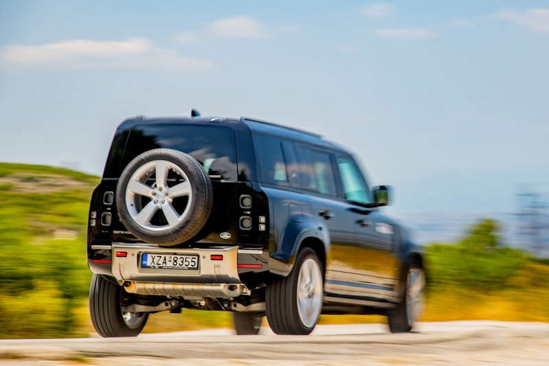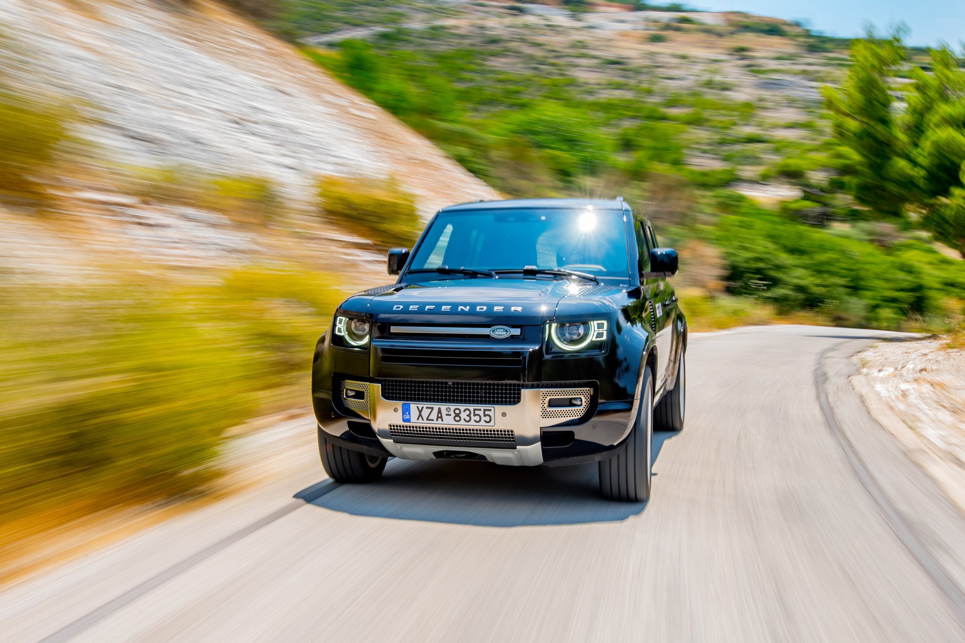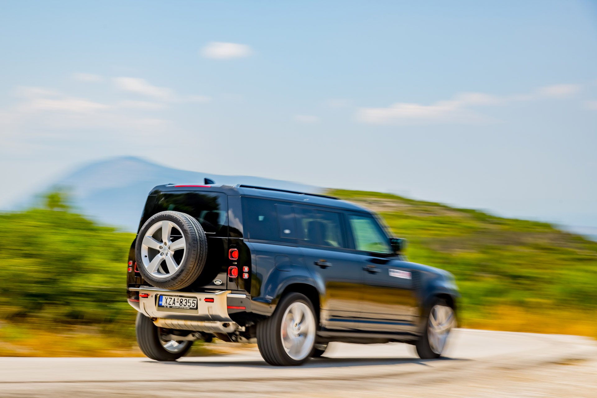 Θετικές εντυπώσεις αφήνει το Defender P400e και στην άσφαλτο. Εδώ, πέραν του γεγονότος ότι έχεις 404 ολόκληρους ίππους στη διάθεσή σου και μπορείς να απολαμβάνεις μία αβίαστη επιτάχυνση (0-100 km/h σε μόλις 5,6 sec), η οποία σε «μπάζει» σαφώς στα χωράφια των σπορ αυτοκινήτων, ανακαλύπτεις ότι οδηγείς ένα αυτοκίνητο που μπορεί να κινηθεί με άνεση σε κάθε τύπου δρόμο, διαχειριζόμενο με επιτυχία και τον όγκο, και το βάρος του που ξεπερνά τους 2,5 τόνους.