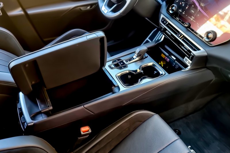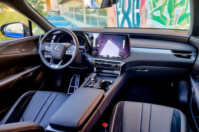 Όταν βρίσκεσαι στο εσωτερικό του Lexus, δεν αργείς να αντιληφθείς ότι βρίσκεσαι σε ένα περιβάλλον υψηλής ποιότητας το οποίο συνεπικουρείται και από την πολύ καλή ηχομόνωση στο εσωτερικό για να συμβάλλουν από κοινού σε αυτό που λέμε «υψηλή ποιότητα κύλισης». Δεν υπάρχει καμία αμφιβολία για το γεγονός ότι έχουμε να κάνουμε με ένα premium μοντέλο. Ενώ στον τομέα της μεταφορικής ικανότητας, με το μήκος του RX 500h να… φλερτάρει επικίνδυνα με τα 5,0 m, είναι λογικό να περιμένει κανείς μεγάλους εσωτερικούς χώρους – και η αλήθεια είναι ότι αυτούς τους χώρους το κορυφαίο Lexus τους προσφέρει: πίσω ακόμα και ο πιο ψηλός επιβάτης μπορεί να καθίσει σταυροπόδι έχοντας άφθονο «αέρα» πάνω από το κεφάλι του. Από την άλλη, και όσοι καθίσουν μπροστά δεν θα έχουν κανένα παράπονο – παρά την τεραστίων διαστάσεων κονσόλα με το πολύ πρακτικό ντουλαπάκι μεταξύ οδηγού και συνοδηγού και το πλήθος των θέσεων για μικροαντικείμενα, αλλά και παρά το εντυπωσιακό ταμπλώ που δείχνει να καταλαμβάνει χώρο μέσα στην καμπίνα αγκαλιάζοντας τον οδηγό.