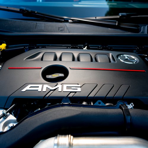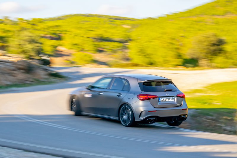 Χωρίς να φορτίζεται με το βάρος της κορωνίδας, μιας και αυτό τον ρόλο παίζει η Α 45 AMG, η μικρή τής οικογενείας σε κερδίζει με την ομοιογένειά της, αλλά και το ταμπεραμέντο της. Ο κινητήρας δεν είναι πουσαρισμένος στα όρια. Αποδίδει 306 PS στις 5.800 rpm, αλλά το μυστικό κρύβεται στην ολιστική απόδοση. Τραβάει δυνατά από το ρελαντί και μέχρι το όριο των στροφών βοηθώντας τον οδηγό να κινηθεί σβέλτα, ακόμα και όταν δεν έχει το γκάζι πατημένο βαθιά. Την εμπειρία κολακεύει η ήπια υβριδική τεχνολογία που συναντάμε και στην υπόλοιπη γκάμα της νέας A-Class. Διαθέτει ηλεκτρικό κύκλωμα 48 Volt και μίζα-δυναμό (RSG) που υποστηρίζει τη γρήγορη εκκίνηση με επιπλέον ισχύ 10 kW. Την ανανέωση στα μηχανικά μέρη συμπληρώνει το νέο ψυγείο κινητήρα, που βελτιώνει τη διαχείριση θερμοκρασίας κατά την οριακή οδήγηση. Συνολικά, πρόκειται για ένα από τα καλύτερα υπετροφοδοτούμενα σύνολα βενζίνης μέχρι τα 2.000 cc.