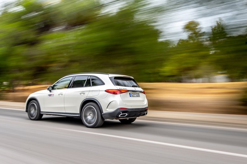 Σε μια ορεινή διαδρομή, η ρύθμιση της στάνταρ Airmatic ανάρτησης (εμπρός 4 συνδέσμων με σύστημα επιλεκτικής απόσβεσης, πίσω ανεξάρτητη αερανάρτηση πολλαπλών συνδέσμων με ρύθμιση ύψους) μπορεί να διαχειριστεί το αυξημένο βάρος του αμαξώματος, ωστόσο οι κλίσεις του αμαξώματος δεν αποφεύγονται, κάτι που δεν ισχύει και με τις έως 432 kg ελαφρύτερες εκδόσεις MΗΕV της GLC. Το σύστημα τετρακίνησης 4MATIC (υπό κανονικές συνθήκες κατανομή εμπρός 31% πίσω 69%) είναι αποδοτικό και εχέγγυο για την ασφαλή πρόσφυση που προσφέρει η GLC, ικανό να διανύσει μια βατή χωμάτινη διαδρομή, ωστόσο οι PHEV εκδόσεις δεν είναι για «πολλά», καθώς η απόσταση από το έδαφος είναι μόλις 14,5 cm και παρά την ύπαρξη τροχών 20 ΄΄. Συμπερασματικά, έχουμε να κάνουμε με έναν άξιο εκπρόσωπο του γερμανικού εργοστασίου, το οποίο προσφέρει ό,τι ακριβώς περιμένεις από μια γνήσια Mercedes σε άνεση, πολυτέλεια και εμπειρία οδήγησης, δίνοντας άλλη δυναμική στην κατηγορία των plug-in hybrid οχημάτων με τη μεγάλη ηλεκτρική αυτονομία που προσφέρει. Μια εξαιρετική επιλογή για όποιον επιθυμεί ένα μεσαίο SUV για να κινείται οικολογικά στην πόλη και να απολαμβάνει τα μεγαλύτερα ταξίδια.