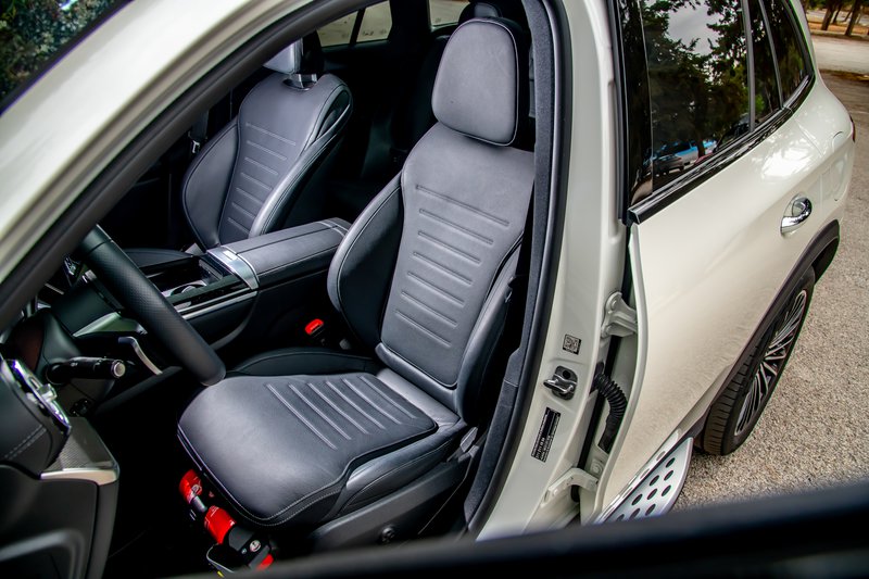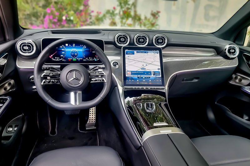 Βεβαίως, οι ομοιότητες με τις ακριβότερες σειρές της GLC είναι περισσότερο εμφανείς στο εσωτερικό, που είναι εντυπωσιακό. Εδώ η πολυτέλεια συνδυάζεται με τις κορυφαίες τεχνολογικές εφαρμογές προσδίδοντας την εικόνα ενός luxury αυτοκινήτου. Κορυφαίας ποιότητας υλικά κατασκευής και αψεγάδιαστο φινίρισμα, χρωμιωμένες επιφάνειες και καλαίσθητος φωτισμός δημιουργούν έναν ευχάριστο περιβάλλον. Χαρακτηριστικά στοιχεία, οι αεραγωγοί που σχεδιαστικά προσομοιώνουν κινητήρα αεροσκάφους, αλλά και η μεγάλη κεντρική κονσόλα που διαχωρίζει τον οδηγό από τον συνοδηγό. Η ψηφιοποίηση είναι ένα ακόμα σημείο αναφοράς, με την κάθετα τοποθετημένη κεντρική οθόνη των 11,9 ΄΄ να προσφέρει όλες τις πληροφορίες από το infotainment και των επιμέρους συστημάτων και εφαρμογών του αυτοκινήτου και τον ψηφιακό πίνακα οργάνων των 12,3 ΄΄, αμφότερες στραμμένες προς τον οδηγό, ενισχύοντας τον οδηγοκεντρικό χαρακτήρα του αυτοκινήτου. Στοιχεία από μεγαλύτερες σειρές της Mercedes συναντώνται στους διακόπτες ρύθμισης των ηλεκτρικών καθισμάτων, που είναι στις λαβές ανοίγματος των θυρών, τα επανασχεδιασμένα καθίσματα, όπου τα προσκέφαλα είναι ενιαίο τμήμα με την πλάτη, οι (προαιρετικά) δερμάτινες επενδύσεις στο εσωτερικό, και στους ώμους των παραθύρων, τα ένθετα από ξύλο ή αλουμίνιο στο ταμπλώ, κ.ά.