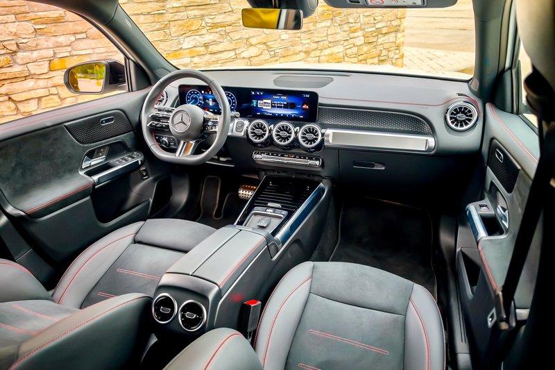Το εσωτερικό δεν φαίνεται να έχει αλλαγές πλην ελαχίστων εξαιρέσεων, όπως είναι το νέο τιμόνι με την αλλαγή των λειτουργιών και της εμφάνισής του με μπουτόν αφής (γιατί;), η κατάργηση του trackpad στη βάση της κονσόλας, το MBUX με βελτιωμένο χειρισμό με φωνητικές εντολές και τα συστήματα υποβοήθησης οδήγησης που έχουν ανανεωθεί. Όλα αυτά τα ψηφιακά έρχονται με τρία στυλ απεικόνισης (διακριτικό/σπορ/κλασικό) και τρεις τρόπους λειτουργίας (πλοήγηση/υποβοήθηση/service), ενώ η κεντρική οθόνη, καθώς και ο πίνακας οργάνων 10,25’’ ως μέρος του πακέτου advantage, περιλαμβάνονται πλέον στον βασικό εξοπλισμό. Η πρακτικότητα είναι πάντα κορυφαία, από τις ρυθμιζόμενες πλάτες των καθισμάτων της δεύτερης σειράς, καθώς και τη δυνατότητα μετακίνησης εμπρός-πίσω κατά 140 mm (προαιρετικά). Παράλληλα, η προαιρετική δυνατότητα διαμόρφωσής της σε επταθέσια την καθιστά ιδανική επιλογή για μεγάλες οικογένειες, αν και η τρίτη σειρά καθισμάτων έχει κάποιους περιορισμούς, καθώς είναι κατάλληλη για επιβάτες ύψους έως 1,65 m. Ο χώρος αποσκευών των 495 L ενισχύεται από το γενναιόδωρο μεταξόνιο των 2,83 m, συμβάλλοντας στην πρακτικότητα του οχήματος.