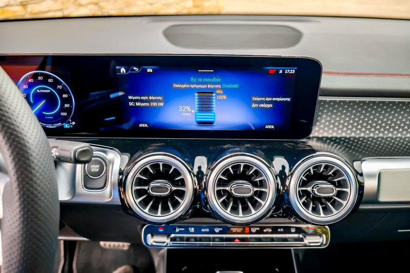 Πόσο μεγάλη; Όσο μπορεί να προσδώσει η πλατφόρμα MFA—η ίδια που χρησιμοποιείται και για τα μικρότερα μοντέλα της φίρμας με θερμικούς κινητήρες— φτάνοντας σε ένα μήκος 4,68 m. Πριν περάσουμε στο εσωτερικό, να δούμε τις απειροελάχιστες αλλαγές στην εξωτερική σχεδίαση που εξακολουθεί να ισορροπεί ανάμεσα σε ακμές και καμπύλες, με ένα αντίκτυπο εργαλείου στην όλη αισθητική που ελαφραίνει λίγο από την κλειστή μάσκα με τα αστέρια της Mercedes (εμπρός) και το νέο περιεχόμενο των πίσω φώτων. Αξιοσημείωτη, παρά το σχήμα και μέγεθος της EQB, η βελτιωμένη αεροδυναμική τού αμαξώματος, που εξασφαλίζει έναν χαμηλό συντελεστή οπισθέλκουσας, δημιουργώντας την όσο το δυνατόν καλύτερη (βλέπε: αθόρυβη) ποιότητα κύλισης όσο και την ενεργειακή απόδοση.