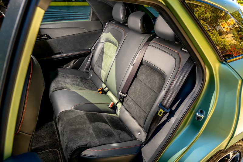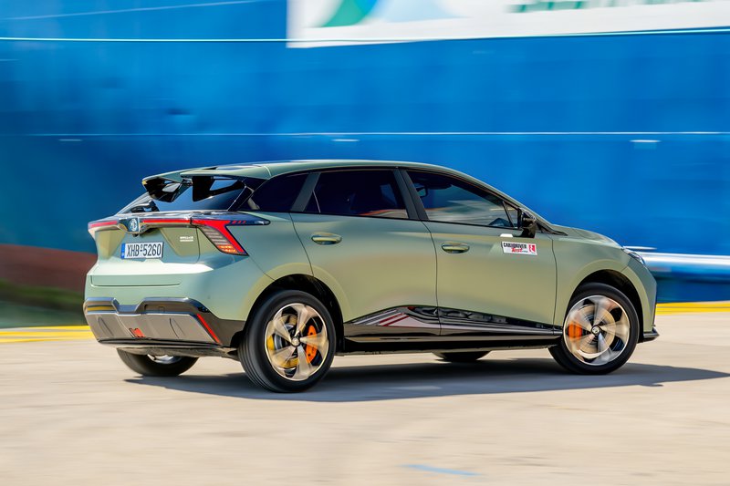 Αναμφίβολα, το MG4 είναι ξεχωριστό σχεδιαστικά. Δεν το μπερδεύεις με κάτι άλλο στον δρόμο. Όπως αρκετά ηλεκτρικά, έχεις την εντύπωση πως προσγειώθηκε από το μέλλον. Οι γραμμές του είναι αιχμηρές με αρκετά σπορ στοιχεία, όπως, για παράδειγμα, τη διπλή αεροτομή στο πίσω μέρος που μοιάζει με προέκταση των πλαϊνών της οροφής, τη μαύρη οροφή, αλλά και τους προφυλακτήρες με τις ακμές και τις γωνίες που σε προϊδεάζουν για έντονες συγκινήσεις. Το λογότυπο XPower, που μαρτυρά την εντυπωσιακή ισχύ, θα το βρείτε γραμμένο μόνο στις δαγκάνες των φρένων και πουθενά αλλού. Για τους πιο διαβασμένους, όμως, η πράσινη ματ βαφή με την ονομασία Hunter Green (όπως το αυτοκίνητο της δοκιμής μας) είναι αποκλειστικά διαθέσιμη στην ισχυρή έκδοση, οπότε, αν υπάρχει, είναι ένα ακόμα στοιχείο που θα προδώσει τη δυνατή έκδοση.
