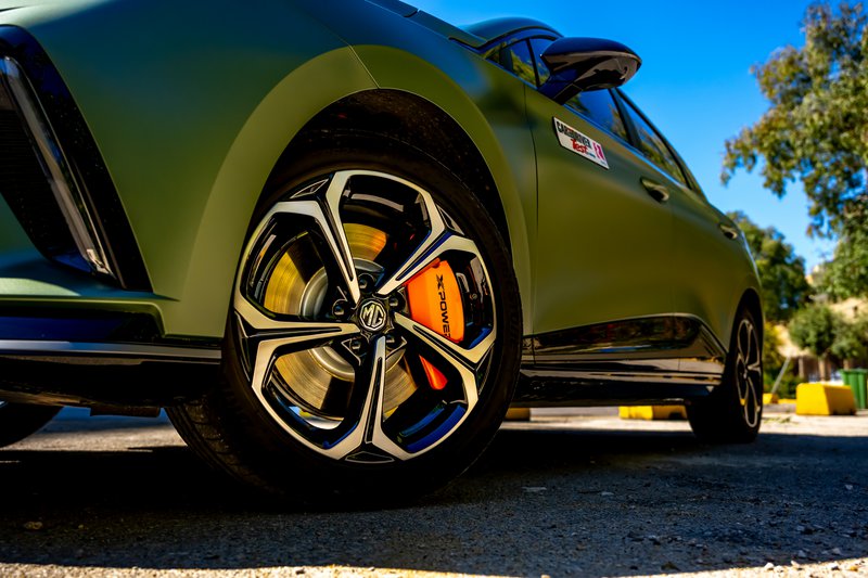 Ωστόσο, το MG4 δεν είναι ένα συνηθισμένο hatchback, μιας και η απόσταση των 150 mm από το έδαφος σε όλες τις εκδόσεις του προσδίδει στοιχεία οχήματος ελεύθερου χρόνου, κάτι ιδιαίτερα καλοδεχούμενο για το ελληνικό ανάγλυφο. Ωστόσο, με βάση τις προδιαγραφές της έκδοσης XPower, θα περίμενες η ανασχεδιασμένη ανάρτηση να έχει χαμηλώσει 2-3 cm, όπως μας έχουν συνηθίσει άλλοι κατασκευαστές. Ωστόσο, νέα είναι τα αμορτισέρ, τα ελατήρια και οι αντιστρεπτικές, με αποτέλεσμα η ανάρτηση να είναι πιο σφιχτή κατά 25% σε σύγκριση με τις υπόλοιπες εκδόσεις. Επιπρόσθετα, έχει αναθεωρηθεί το σύστημα διεύθυνσης για να είναι πιο άμεσο. Τα φρένα είναι νέα με αεριζόμενους δίσκους 345 mm σε όλους τους τροχούς, που σε συνδυασμό με τα ελαστικά Bridgestone Turanza διάστασης 235/45/18, εξασφαλίζουν απόσταση ακινητοποίησης 33,9 m από τα 100 km/h.