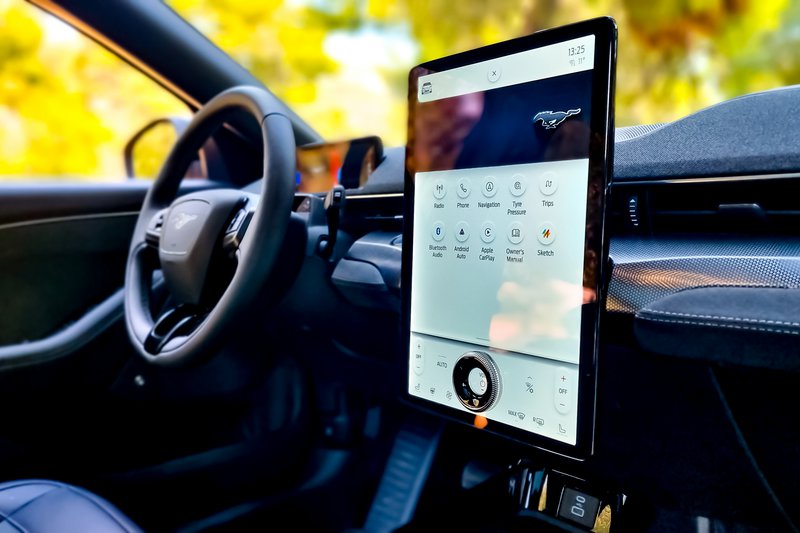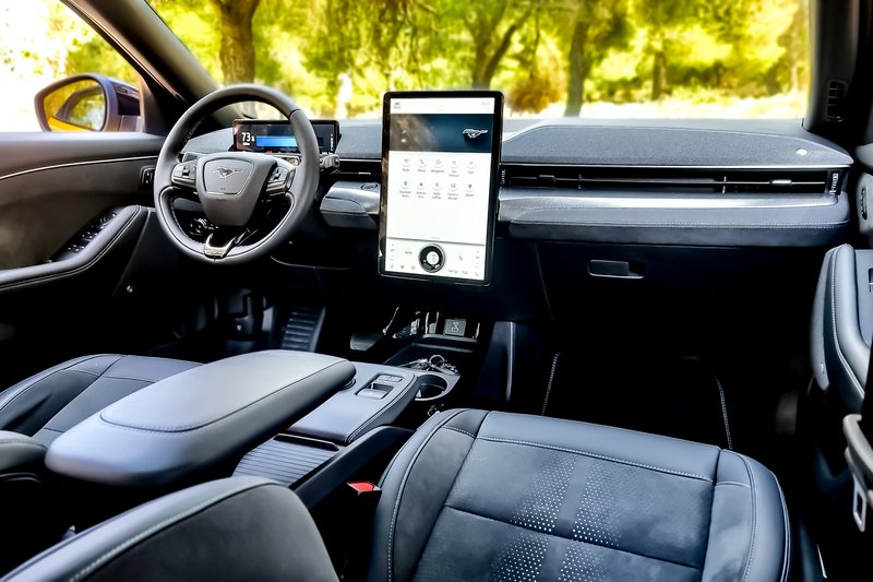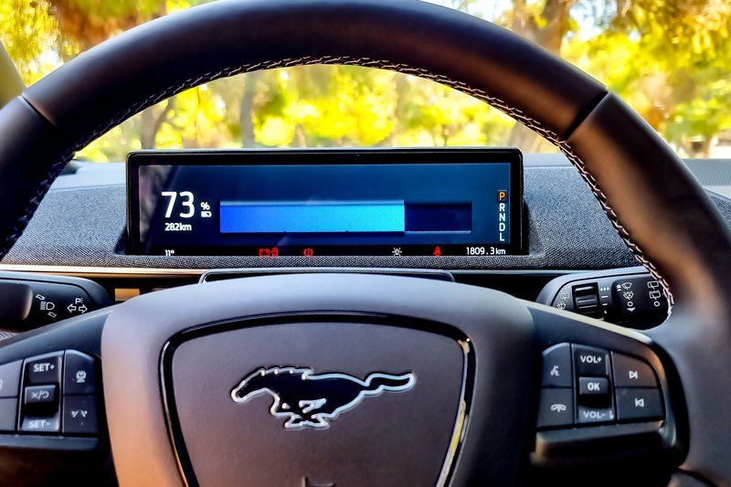 Επίσης. όπως θα περίμενε κανείς. υπάρχουν οι προηγμένες τεχνολογίες υποστήριξης οδήγησης, λόγου χάριν: Intelligent Adaptive Cruise Control με Stop & Go και Lane Centring, Lane-Keeping System με Blind Spot Assist, Active Park Assist 2.0 και Pre Collision Assist με Auto Emergency Braking, ενώ υπάρχουν ήδη κάποιες αλλαγές στα μενού, συγκριτικά με τα πρώτα Mustang Mach-E που οδηγήσαμε πριν σχεδόν έναν χρόνο.