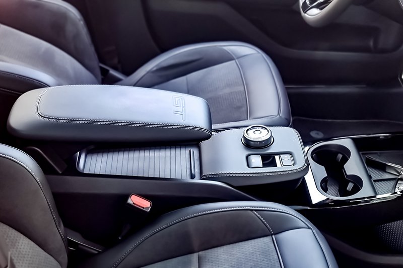 Ναι, η πρώτη εικόνα θέλει ακονισμένο βλέμμα για να καταλάβεις ότι τούτο το Mach-E είναι top στην πυραμίδα των μοντέλων. Δεν είναι μόνο το πορτοκαλί χρώμα (που θυμίζει Focus ST στην πίστα Paul Ricard πριν δεκαπέντε χρόνια). Είναι και οι θόλοι στο χρώμα του αμαξώματος, η νέα πολυκαρβονική μάσκα 3D, η σχεδίαση του εμπρός προφυλακτήρα με τις σπέσιαλ εισαγωγές και το σπόιλερ και οι 20άρες ζάντες μαζί με τη μαύρη οροφή που κάνει ένα bad-ass αποτέλεσμα, που θα έλεγαν και Αμερικανοί βελτιωτές.