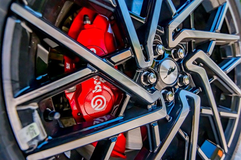 Εδώ έβαλαν τις… δαγκάνες τους οι ειδικοί της Brembo. Τετραπίστονες διαμέτρου 44 mm, σταθερές αλουμινένιες εμπρός με αεριζόμενους δίσκους 385 mm (έναντι 362 mm των απλών Mach-E) και επίσης τετραπίστονες πίσω με απλούς δίσκους 316 mm. Και σε μια ακόμα στροφή της πλοκής τα φρένα έχουν σχεδιαστεί για να συνεργάζονται με αυτό που μας έλειψε από όσες Mustang Mach-E είχαμε οδηγήσει ως τώρα: ρυθμιζόμενες αναρτήσεις.