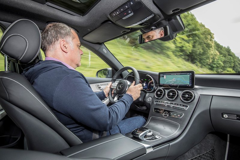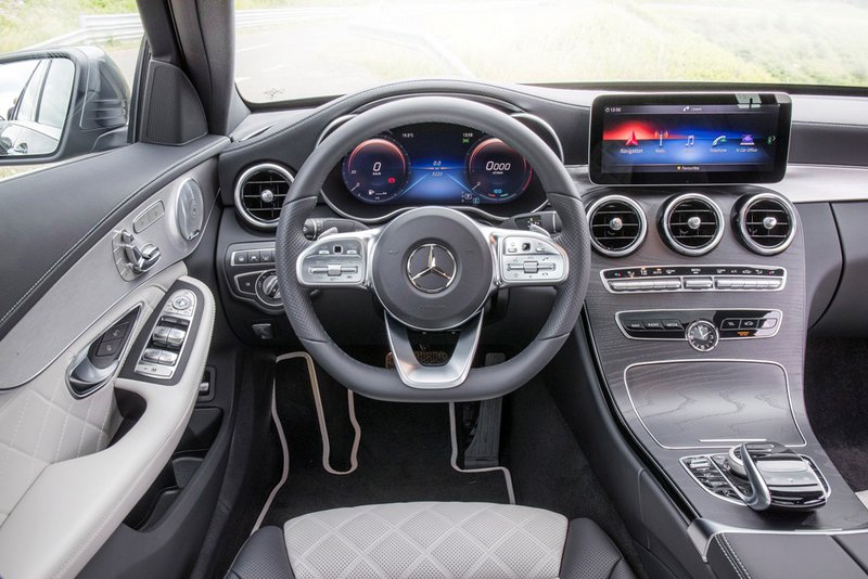 Ευχάριστη είναι η ανανέωση στο εσωτερικό όπου με μια διακριτική επέμβαση η νέα C-Class απέκτησε πιο σπορτιφ look. To κουμπί έναυσης κινητήρα είναι πλέον στάνταρ (αντίο κλειδί στη μίζα), το πακέτο καθισμάτων είναι νέο, όπως και ο πίνακας οργάνων που ποικίλει από απλά όργανα με 5,5 ιντσών έγχρωμη οθόνη στη βασική έκδοση, μέχρι ένα πλήρως ψηφιακό περιβάλλον με όργανα σε οθόνη 12,3 ιντσών και παραμετροποίηση σε Classic, Sport και Progressive. Χάρμα οφθαλμών είναι και το νέο πολυλειτουργικό τιμόνι, όπως και το περιβάλλον στη νέα μεγάλη οθόνη αλά tablet στην κορυφή του ταμπλό διαγωνίου 10,25 ιντσών, ενώ χάρμα…αυτιών το ηχοσύστημα της Burmester. Κατά τα λοιπά οι χώροι παραμένουν άριστοι, το ίδιο και τα υλικά, η αίσθηση δηλαδή ότι το αυτοκίνητο είναι αυθεντικά premium. Άλλα στοιχεία ναυαρχίδας είναι βέβαια η παραμετροποίηση της ατμόσφαιρας της καμπίνας με ρυθμίσεις σε φωτισμό και άρωμα ή ακόμη οι πολλαπλές φωνητικές εντολές που δέχεται (και μάλιστα με ποικιλία στον τρόπο απάντησης, πάντα με το σωστό όμως νόημα!). Για τους techno junkies να αναφέρουμε ότι η πλατφόρμα MBUX της A-Class δεν έχει ενσωματωθεί στη C-Class μιας και η πρώτη εφαρμόζεται –για την ώρα- στη βασική πλατφόρμα της Mercedes. Και βέβαια το οπλοστάσιο της νέας c-Class ενισχύεται από τη διάδραση αυτοκινήτου και συστήματος πλοήγησης (π.χ. το αυτοκίνητο ρυθμίζει αυτόματα τη λειτουργία του εισερχόμενο σε πλατεία ) εφοδιάζεται με Active Distance Assist DISTRONIC και Active Steering Assist, Active Emergency Stop Assist και Active Lane Change Assist σε συνεργασία με ραντάρ και στερεοσκοπική κάμερα. Συνάμα εξοπλίζεται με μια μεγάλη ομπρέλα συστημάτων που συναντάμε πλέον σχεδόν σε κάθε κατηγορία οχημάτων.