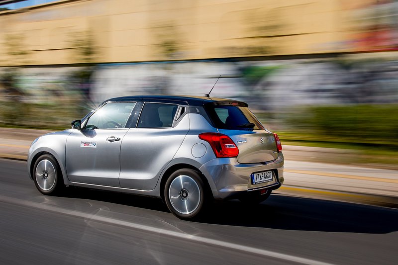 Πάντως, οδηγώντας δεν καταλαβαίνει κανείς κάποια αισθητή διαφορά ή πότε επεμβαίνει το SHVS εκτός κι αν έχει το βλέμμα του στη μικρή έγχρωμη οθόνη του πίνακα οργάνων όπου και απεικονίζεται η σχετική λειτουργία. Όπως και να ‘χει, όμως, με αυτό το Swift μπορείς να κάνεις σβέλτες προσπεράσεις, έστω κι αν πρέπει να κατεβάσεις μία ή δύο σχέσεις, χάρη και στην υποστήριξη της ροπής των 120 Nm, η οποία φυσικά και δεν... τρομάζει, αλλά δεν είναι και αμελητέα. Η επιτάχυνση από στάση έως τα 100 km/h είναι -σύμφωνα με τους Ιάπωνες- υπόθεση 11,9 sec, ενώ η τελική ταχύτητα φτάνει τα 180 km/h. Φυσικά, οι νομοταγείς οδηγοί δε θα δοκιμάσουν ποτέ να επιβεβαιώσουν τις υποσχέσεις των Ιαπώνων σχετικά με την τελική ταχύτητα, ωστόσο σίγουρα θα βιώσουν συμπαθητικές επιταχύνσεις είτε από στάση είτε εν κινήσει.
