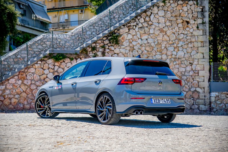 Βλέπεις τα Bridgestone Potenza S005 διαστάσεων 235/35-R19 και… σκιάζεσαι για το πόσο πολιτισμένο μπορεί να είναι τούτο το Golf. Ε, λοιπόν είναι. Μια χαρά σε κινεί στην καθημερινότητά σου με άνεση που προσφέρει το σετάρισμα των αναρτήσεων και άνεση στην… τσέπη με μέση κατανάλωση λίγο πριν τα 8 L/100 km. Είναι και ήσυχο αν το επιθυμείς, κάτι που δε συνάδει με τα… γραμματάκια GT εκεί πίσω. Κι από την άλλη, μπείτε σe Sport mode και όλα μεταμορφώνονται (μαζί και ο συνθετικός ήχος κινητήρα που προσπαθεί να φτιάξει ατμόσφαιρα). Με εξαίρεση ένα μικρό κόμπιασμα στο βαθύ πάτημα του γκαζιού, ακολούθως όλα γίνονται σπορ κανονικά (0-100 km/h σε 7,1 sec, τελική 245 km/h). Στρίβει απόλυτα προβλέψιμα και ελεγχόμενα παρότι μερικές φορές η υποστροφή θα εμφανιστεί λίγο πιο γρήγορα από το αναμενόμενο, αλλά, και πάλι, αναλαμβάνουν τα ηλεκτρονικά να σε φέρουν στα… ίσια. Εκεί που πραγματικά «κεντάει» το Golf GTD είναι σε ορεινές διαδρομές με ανοιχτές καμπές που τις «σιδερώνει» με χαρακτηριστική ευκολία, έχοντας τη ροπή που λέγαμε να σε πάει από καμπή σε καμπή χωρίς καν να αλλάξεις σχέση. Διασκέδαση!