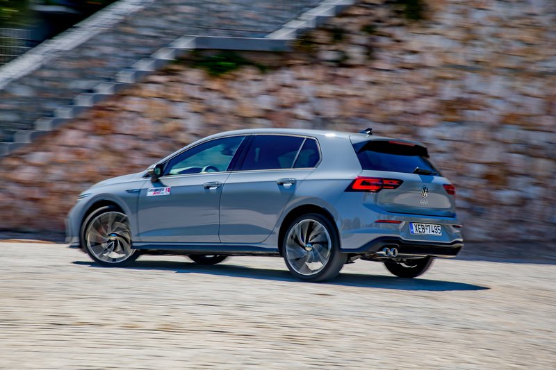 Πριν ασχοληθούμε με αυτά ας σταθούμε στον διακριτικό χαρακτήρα του μοντέλου σε ό,τι αφορά την αισθητική. Τόσο μάλιστα που στο παστέλ γκρι χρώμα περνά σαν… μαχητικό stealth δίπλα σου. Διακρίνονται άμεσα τα στοιχεία ενός Golf με τις δωρικές του αναλογίες, τα φωτιστικά και η λεντοταινία εμπρός, οι όμορφες 19άρες ζάντες, (βάλτε και τις κόκκινες δαγκάνες των φρένων) ενώ πίσω μόνο μια διπλή απόληξη εξάτμισης και μια υποψία από πτέρυγα και καθόλου από διαχύτη σου θυμίζουν ότι εδώ υπάρχει ένα σπορ μοντέλο.