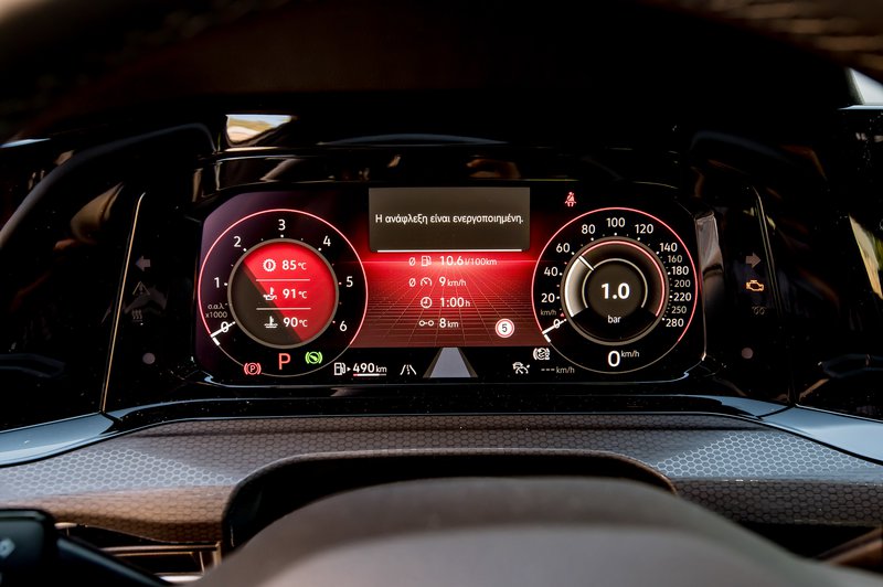 Κάτι καταλαβαίνεις από την παράδοση της Volkswagen βλέποντας τα παραδοσιακά καρώ καθίσματα, κληρονομιά GT που και εδώ έρχονται σε πανέμορφης υλοποίησης και άριστης στήριξης καθίσματα, σε ένα full ψηφιοποιημένο περιβάλλον. Αυτό απαρτίζεται από δύο οθόνες υπό το σχήμα Innovision Cockpit. Παραμετροποιείται σε εμφάνιση και έχει πληθώρα πληροφοριών στα ελληνικά και με ευκρινείς γραμματοσειρές.