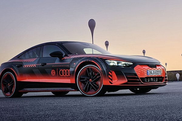 To Audi RS e-tron GT φοράει... τη φανέλα της Μπάγερν Μονάχου και "κατεβαίνει" στην Allianz Arena για τον αγώνα των Βαυαρών με τη Λεβερκούζεν.