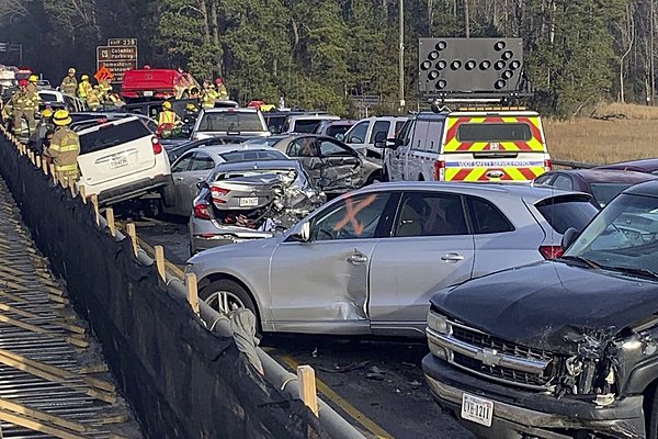 H πρωίνή ομίχλη και ο πάγος στην άσφαλτο οδήγησαν σε μία άνευ προηγουμένου καραμπόλα στην Queens Creek Bridge στην Πολιτεία της Βιρτζίνια