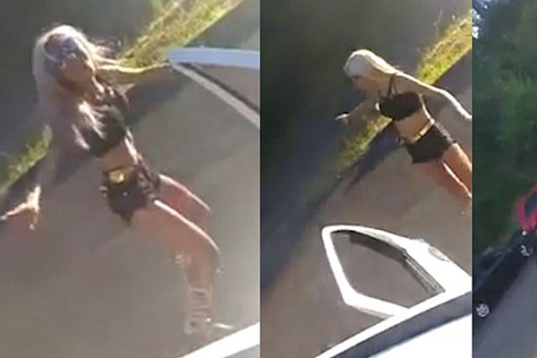 Καλλίγραμμη, ξανθιά Βραζιλιάνα, προκάλεσε χάος όταν αποφάσισε να κάνει επίδειξη των χορευτικών ικανοτήτων της στην άκρη του δρόμου. Δεν ήθελε και πολύ οι διερχόμενοι οδηγοί να χάσουν τη συγκέντρωσή τους με τα καμώματά της και να προκληθεί καραμπόλα χωρίς ευτυχώς θύματα.