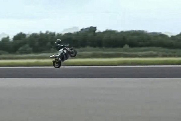 Ο αναβάτης κατάφερε να σουζάρει την μοτοσυκλέτα του και να επιταχύνει μέχρι τα 175,7 χλμ/ώρα, καθήμενος στο τιμόνι και με τα πόδια μπροστά.
