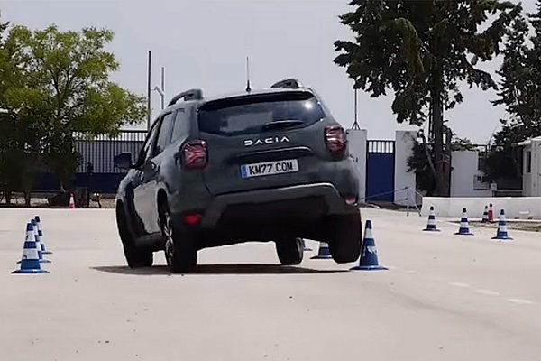 Το Dacia Duster περνά από το τεστ αποφυγής και δυσκολεύεται, με αποτέλεσμα να μην εντυπωσιάζει.