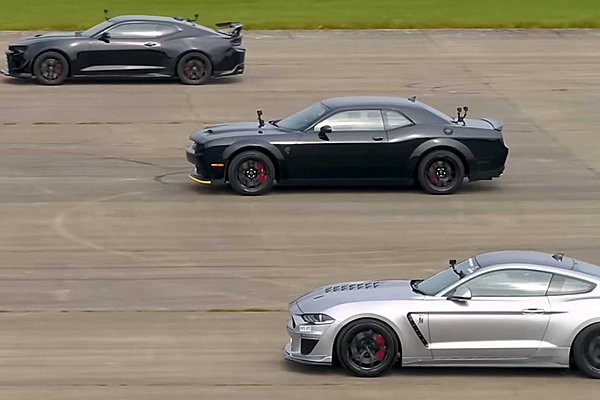Τρία θηρία από την Αμερική στο 400άρι: Camaro, Mustang και Challenger SRT Hellcat Redeye (video)