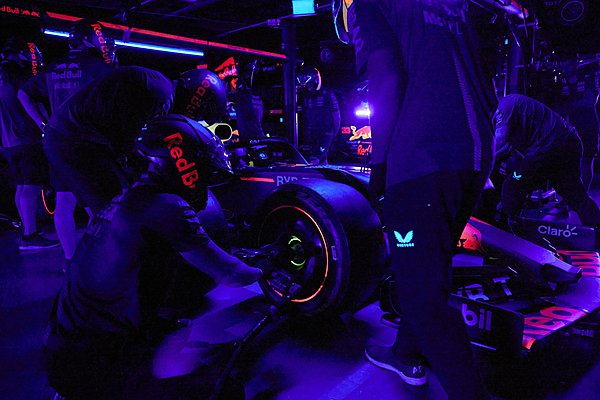 Τα φώτα σβήνουν κι η δράση αρχίζει, αλλά στην κυριολεξία, αφού οι μηχανικοί της Red Bull έκαναν ένα τέλειο pit stop στο απόλυτο σκοτάδι.